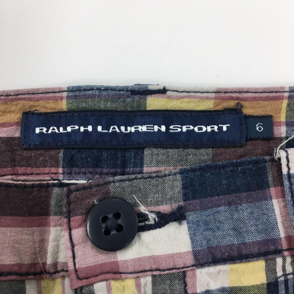 【超美品】ラルフローレンスポーツ スカート スモーキーピンク系×ネイビー チェック 綿100% レディース 6 ゴルフウェア Ralph Lauren