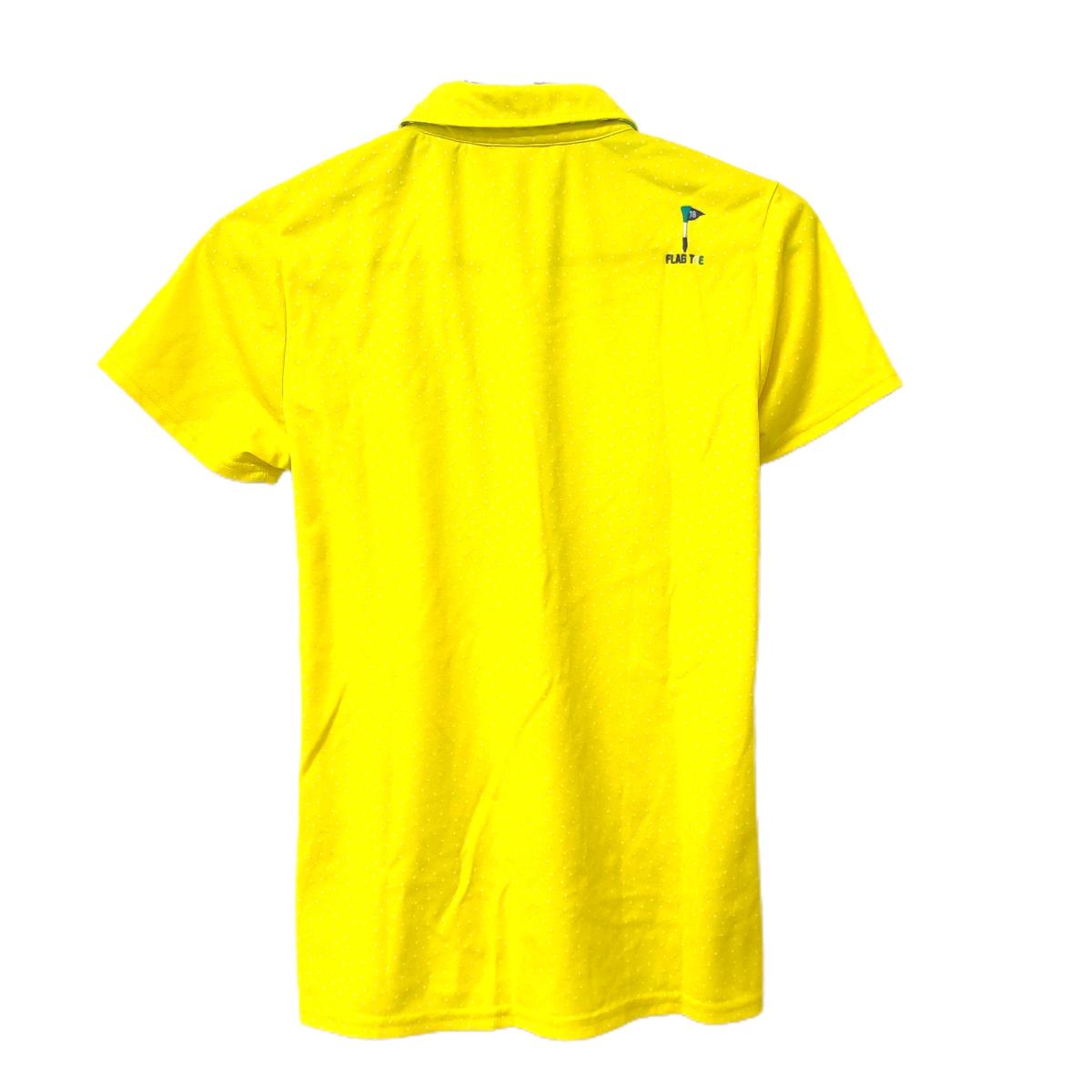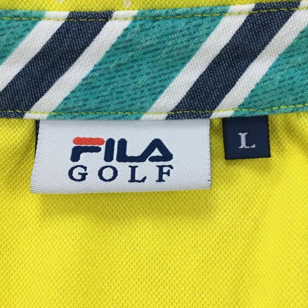 【超美品】フィラゴルフ 半袖ポロシャツ イエロー×白 ドット 襟裏・前立て斜めストライプ レディース L ゴルフウェア FILA GOLF