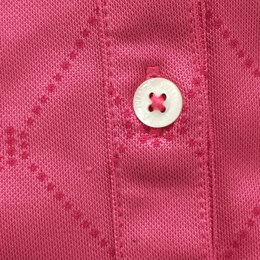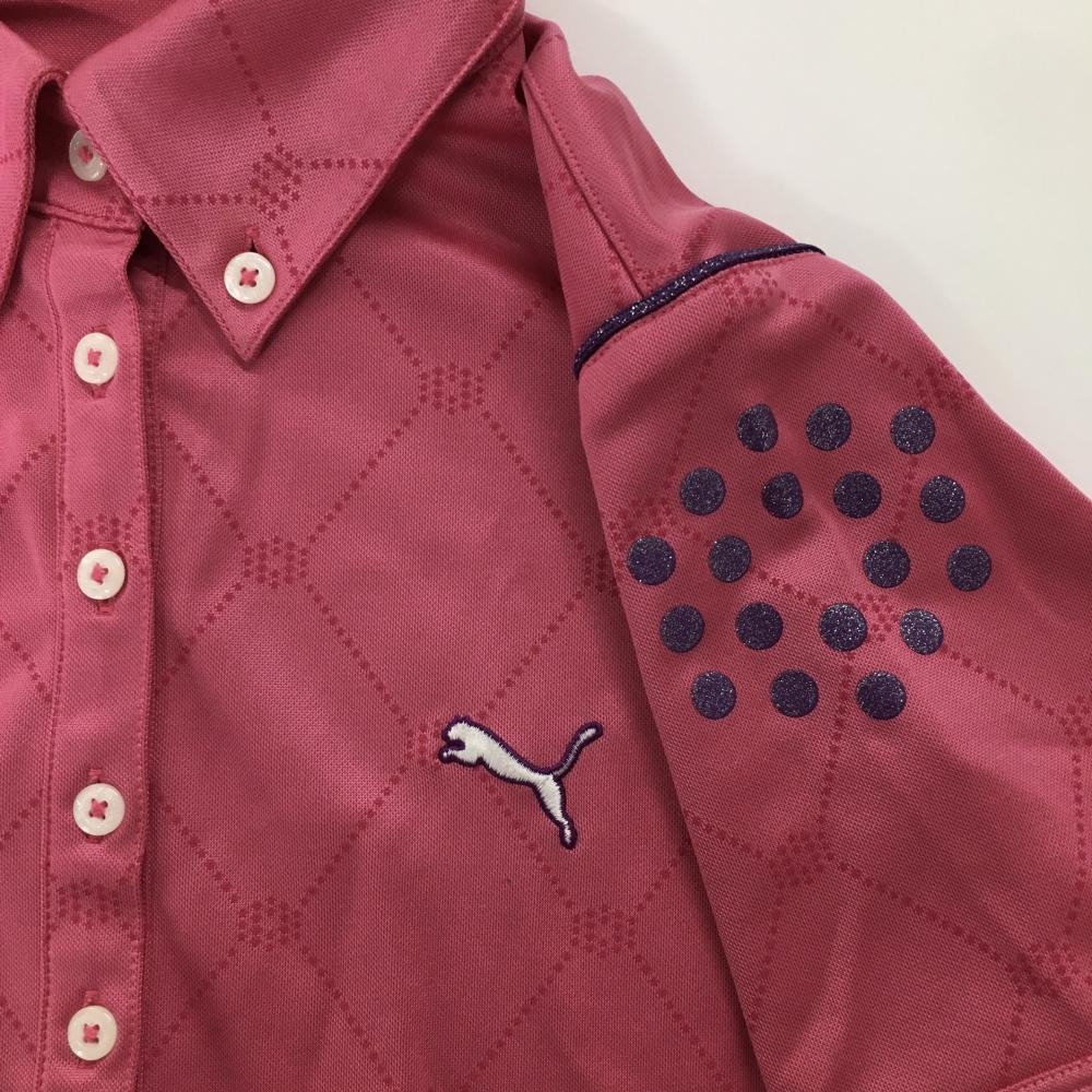 【美品】プーマ 半袖ポロシャツ ピンク×パープル 地模様 パイピングラインラメ ボタンダウン レディース O(XL) ゴルフウェア PUMA