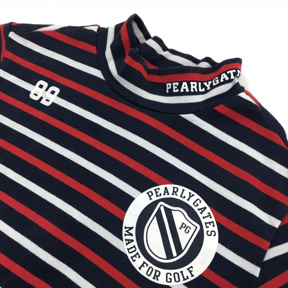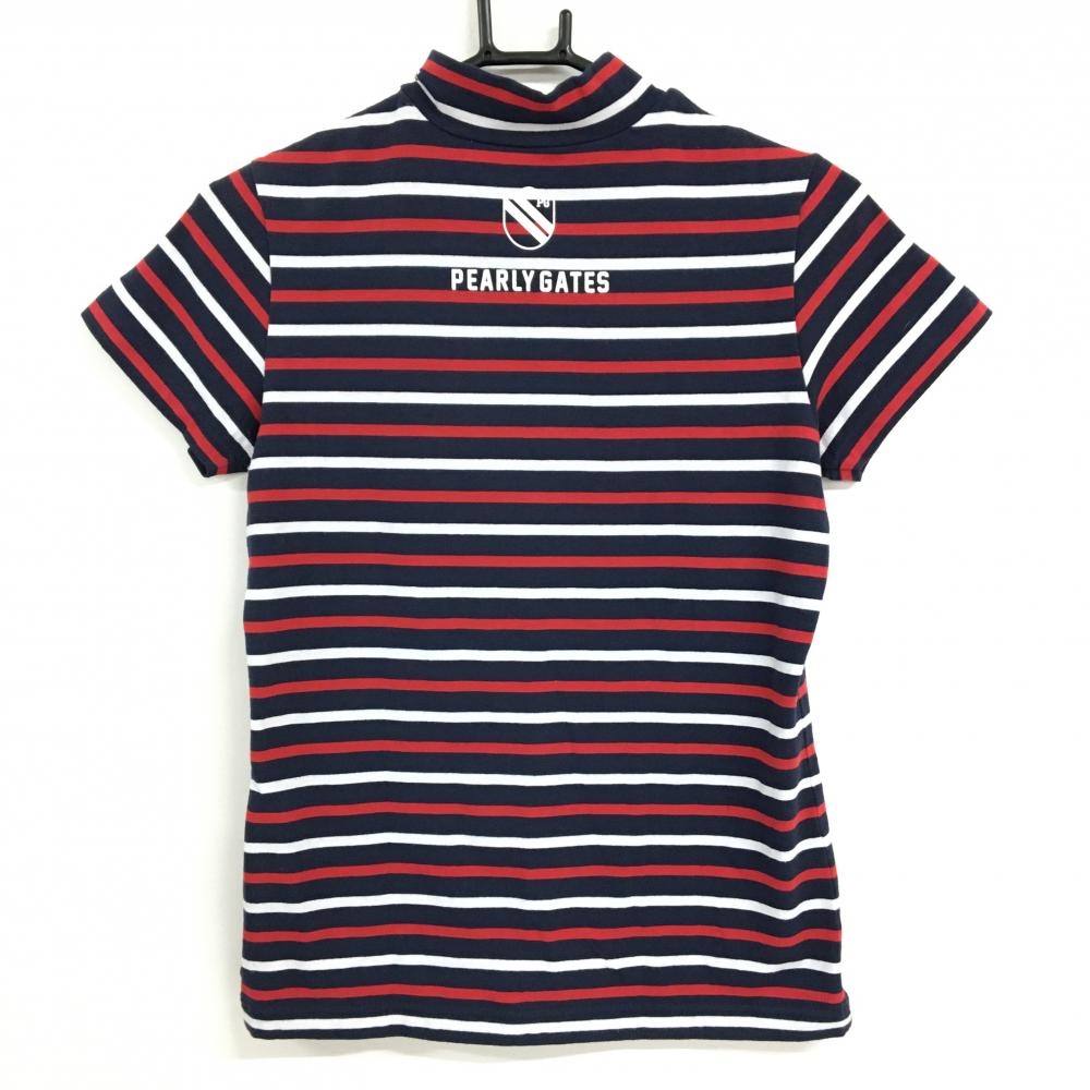 パーリーゲイツ 半袖ハイネックシャツ ネイビー×白×レッド ボーダー レディース 1(M) ゴルフウェア PEARLY GATES