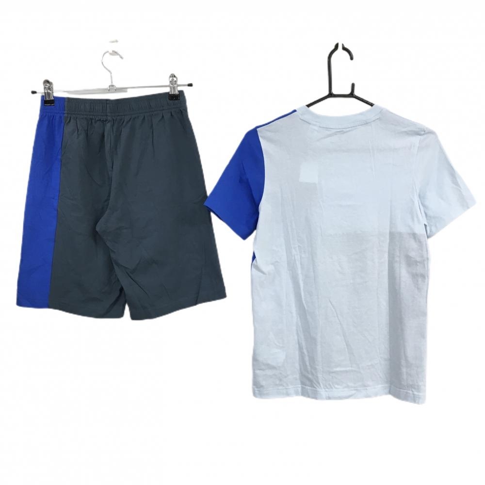 【新品】アディダス Tシャツ上下セット ブルー×ライトブルー ロゴ ハーフパンツ付 レディース 160 ゴルフウェア adidas