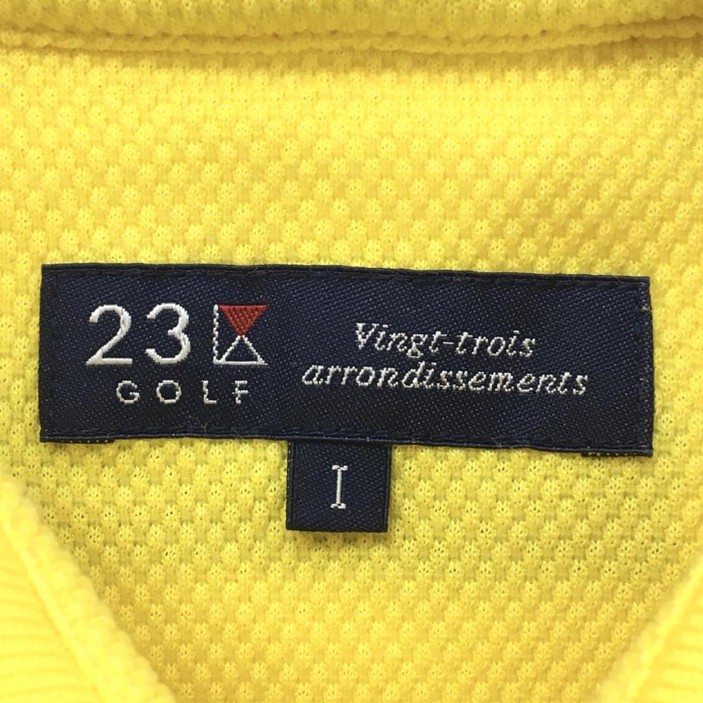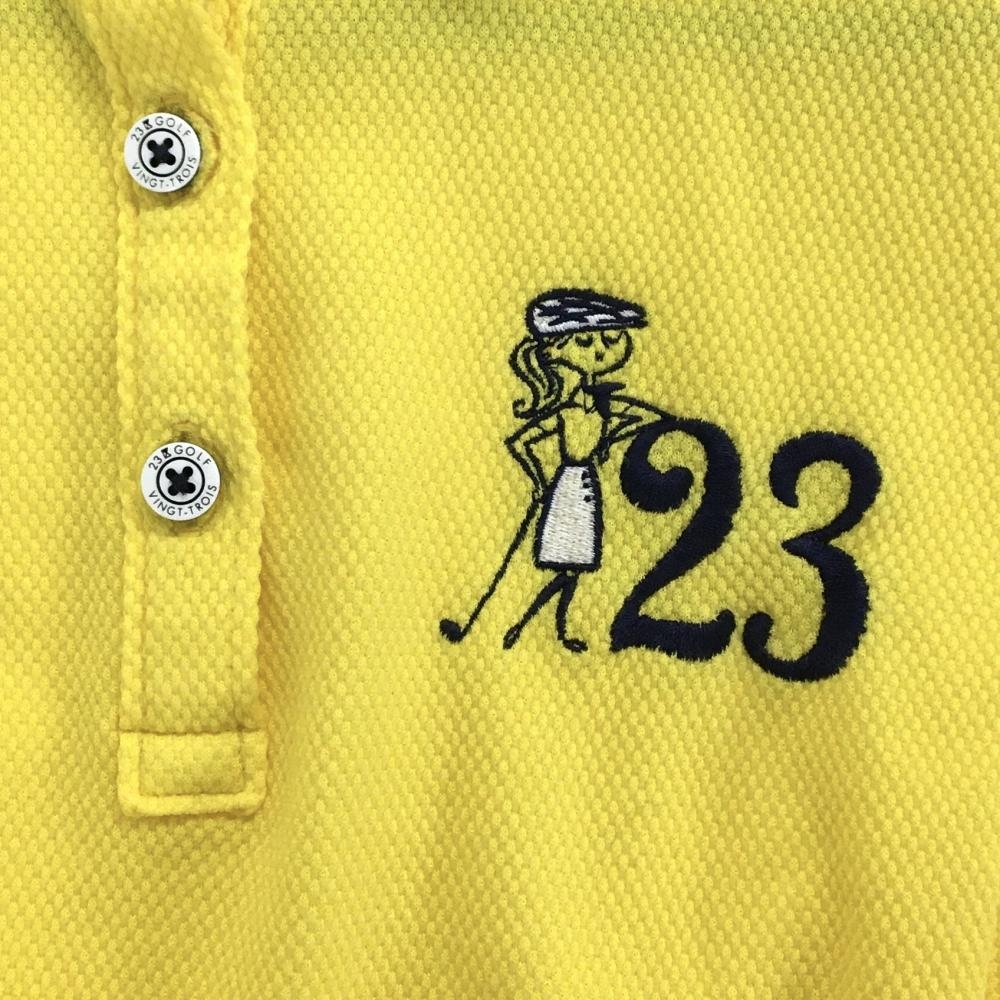 【美品】23区ゴルフ 半袖ポロシャツ イエロー×ネイビー ロゴ刺しゅう レディース I(M) ゴルフウェア 23区