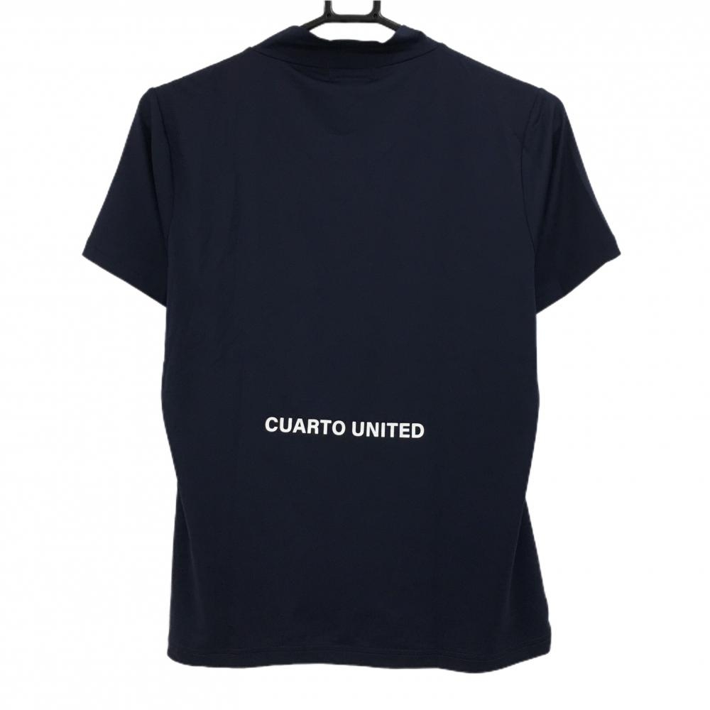 【新品】クアルトユナイテッド 半袖ハイネックシャツ ネイビー×白 UVカット レディース L ゴルフウェア CUARTO UNITED