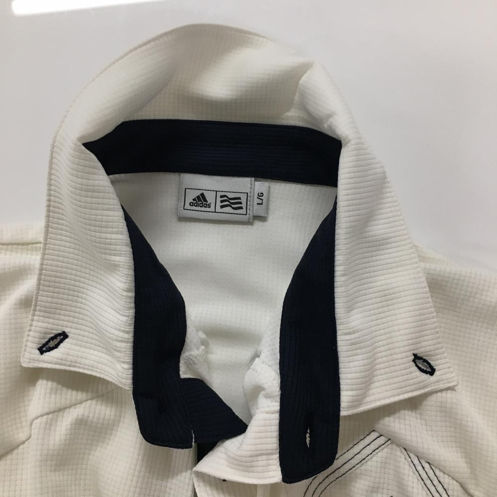 アディダス 半袖ポロシャツ 白×ネイビー ロゴプリント ボタンダウン メンズ L/G ゴルフウェア adidas
