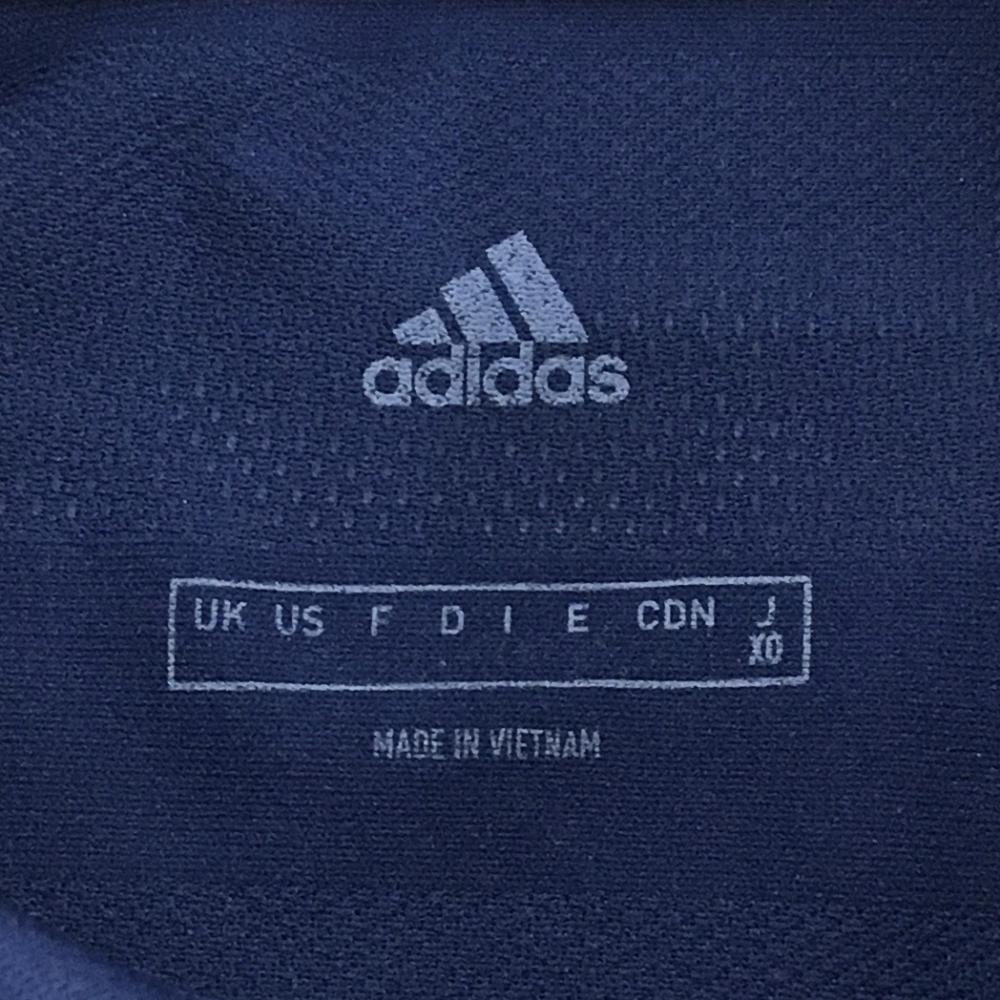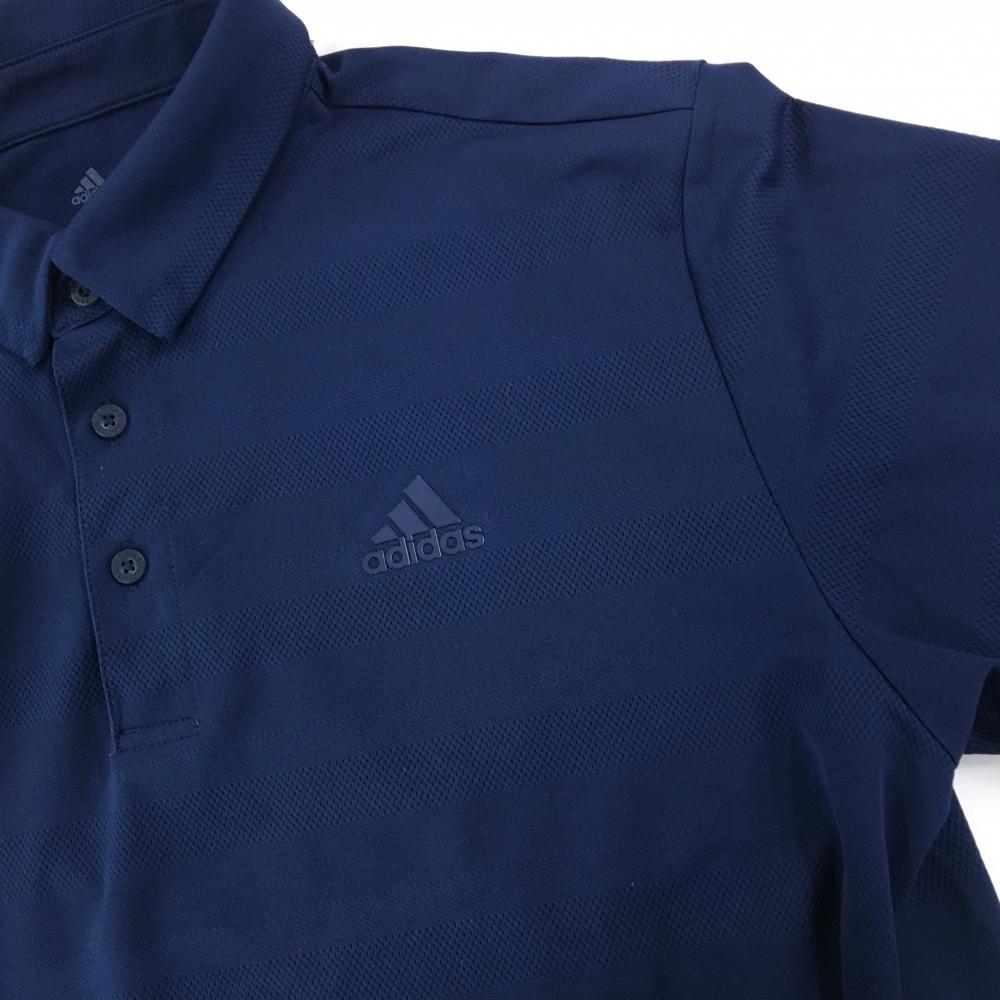 【超美品】アディダス 半袖ポロシャツ ネイビー ボーダー地模様 ロゴ メンズ XO ゴルフウェア adidas