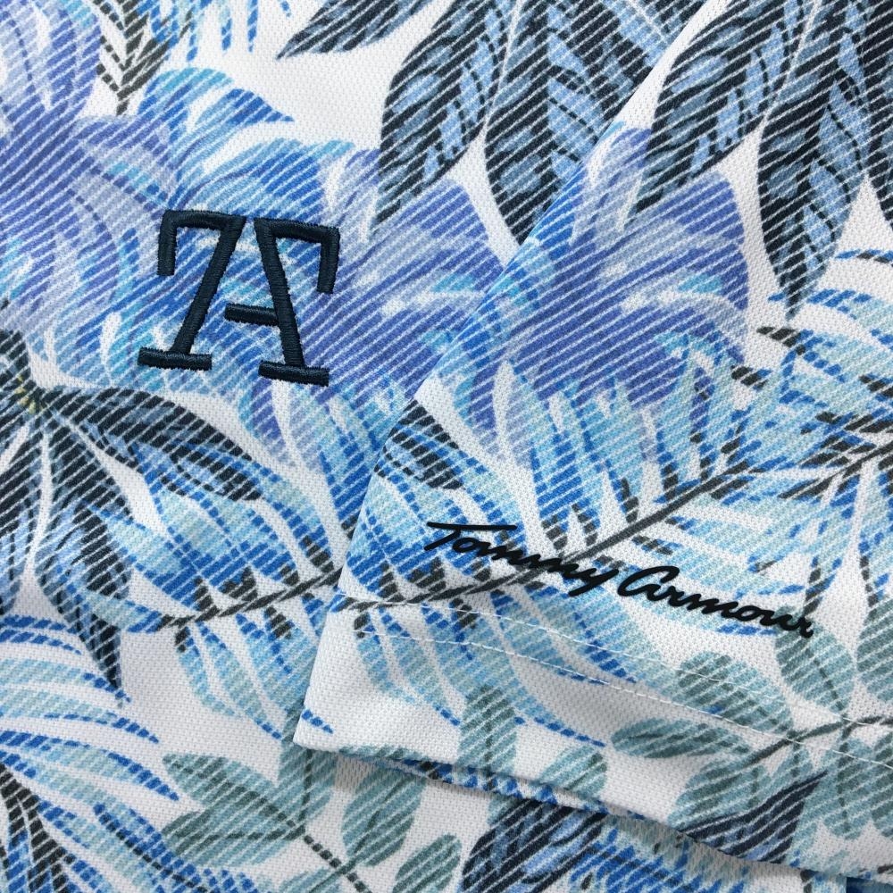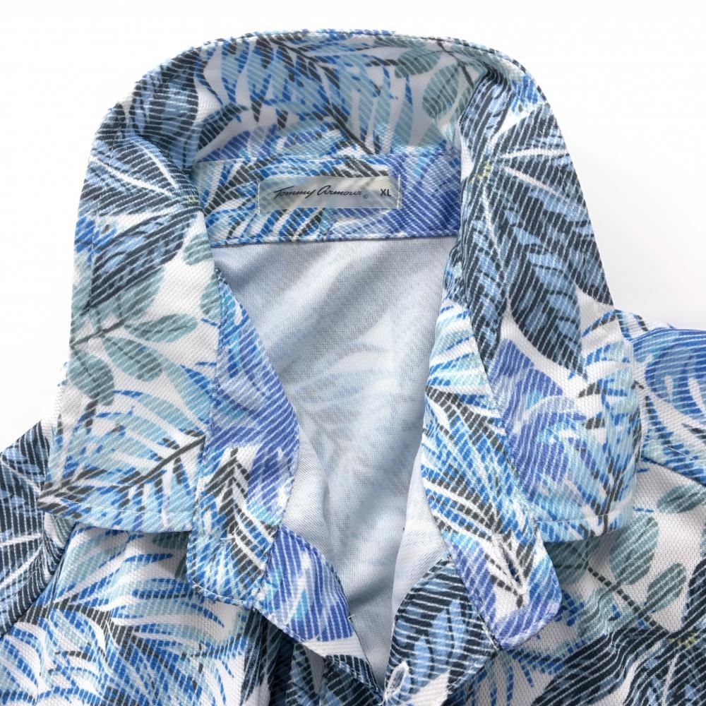 トミーアーマー 半袖ポロシャツ ブルー×白 リーフ柄 メンズ XL ゴルフウェア TommyArmour