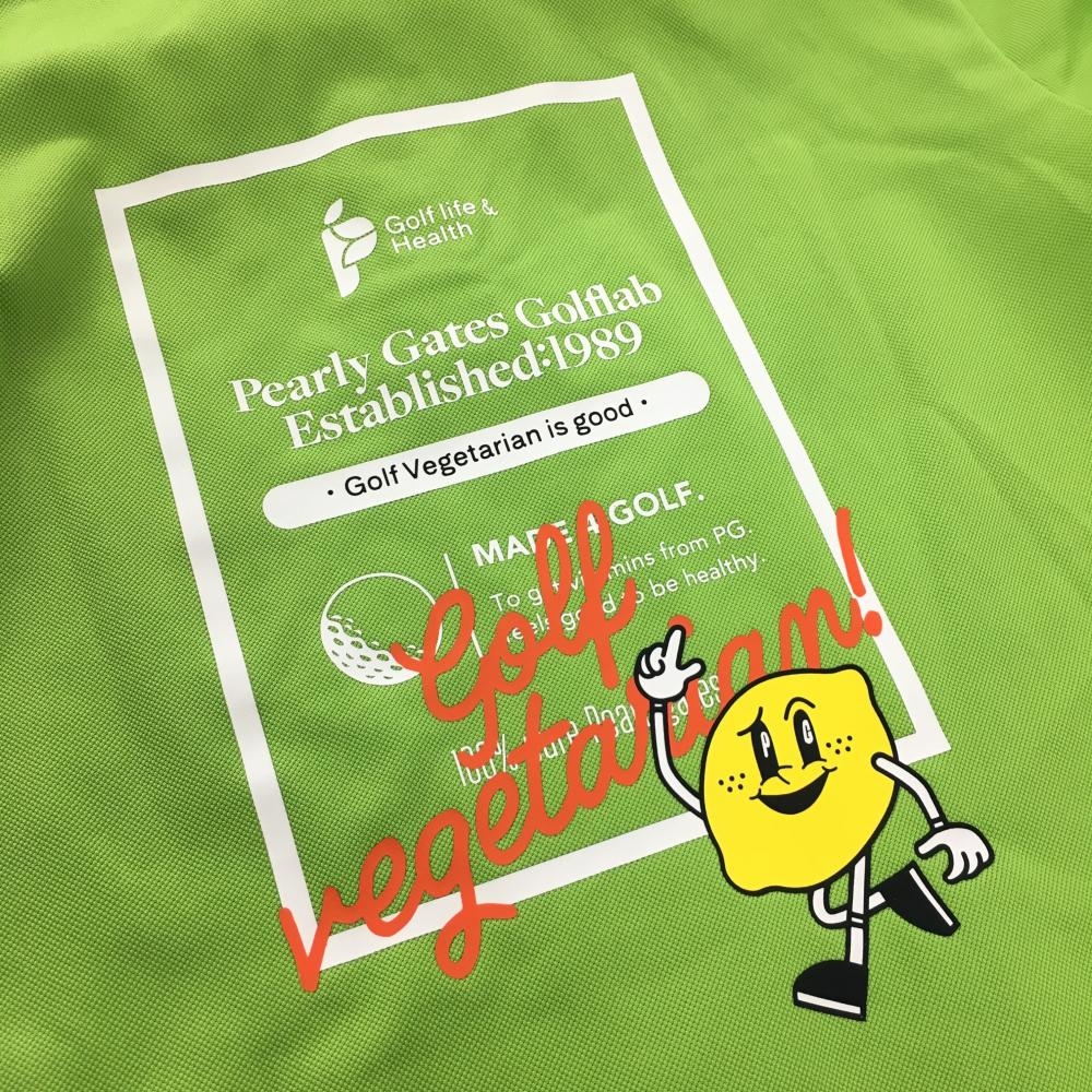 【超美品】パーリーゲイツ 半袖ポロシャツ ライトグリーン フロントロゴ レモン メンズ 5(L) ゴルフウェア 2025年モデル PEARLY GATES