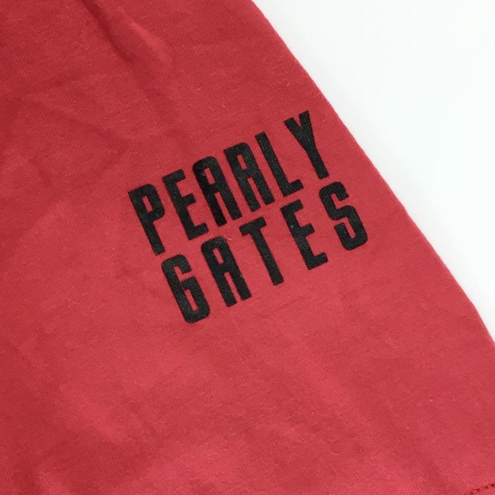 【美品】パーリーゲイツ 半袖ハイネックシャツ レッド×黒 ネックロゴ メンズ 5(L) ゴルフウェア PEARLY GATES