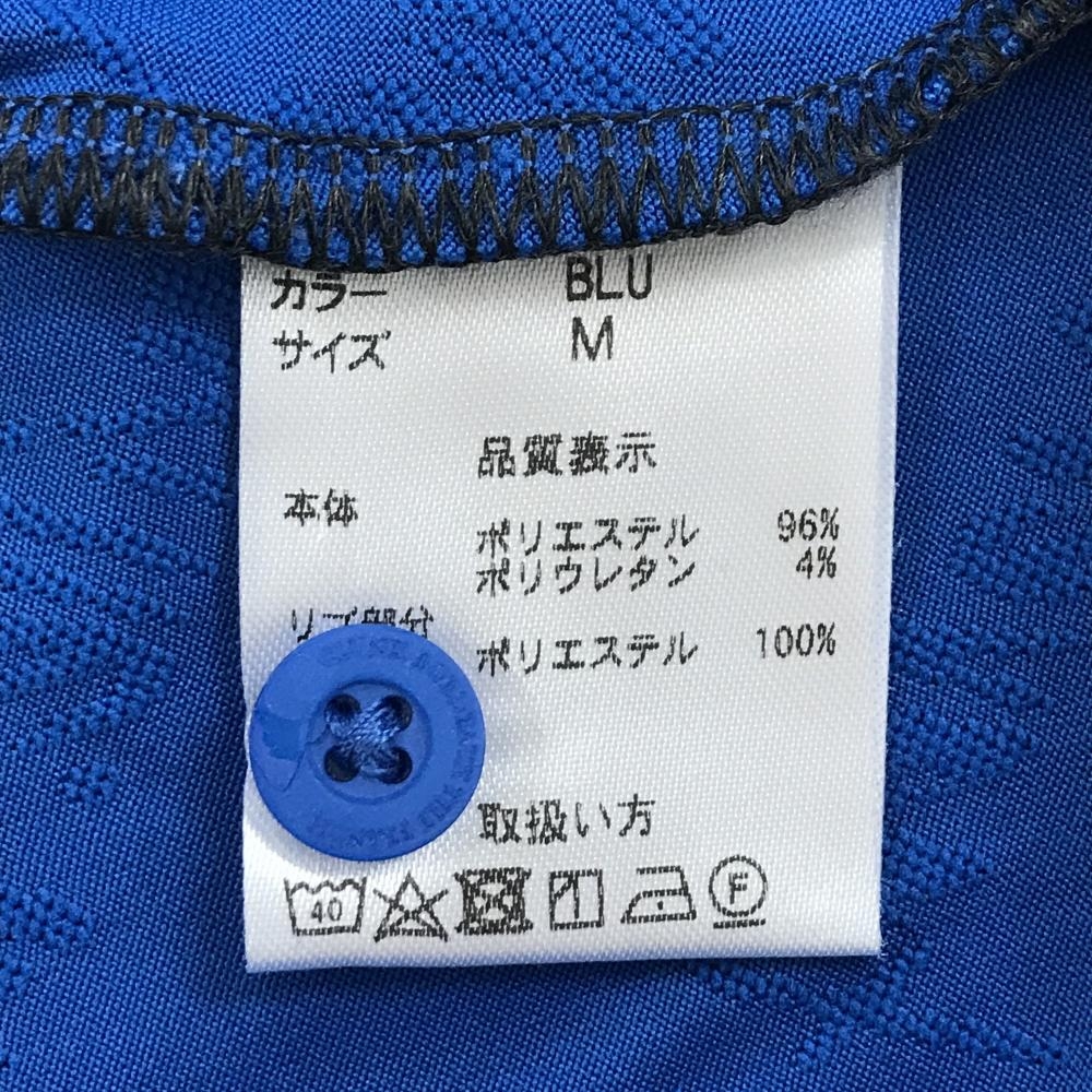【超美品】クランク 半袖ポロシャツ ブルー 英字総柄 ロゴワッペン レディース M ゴルフウェア CLUNK