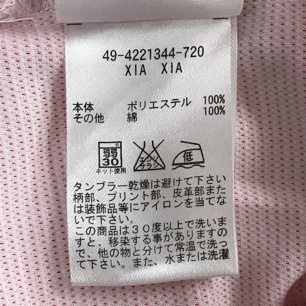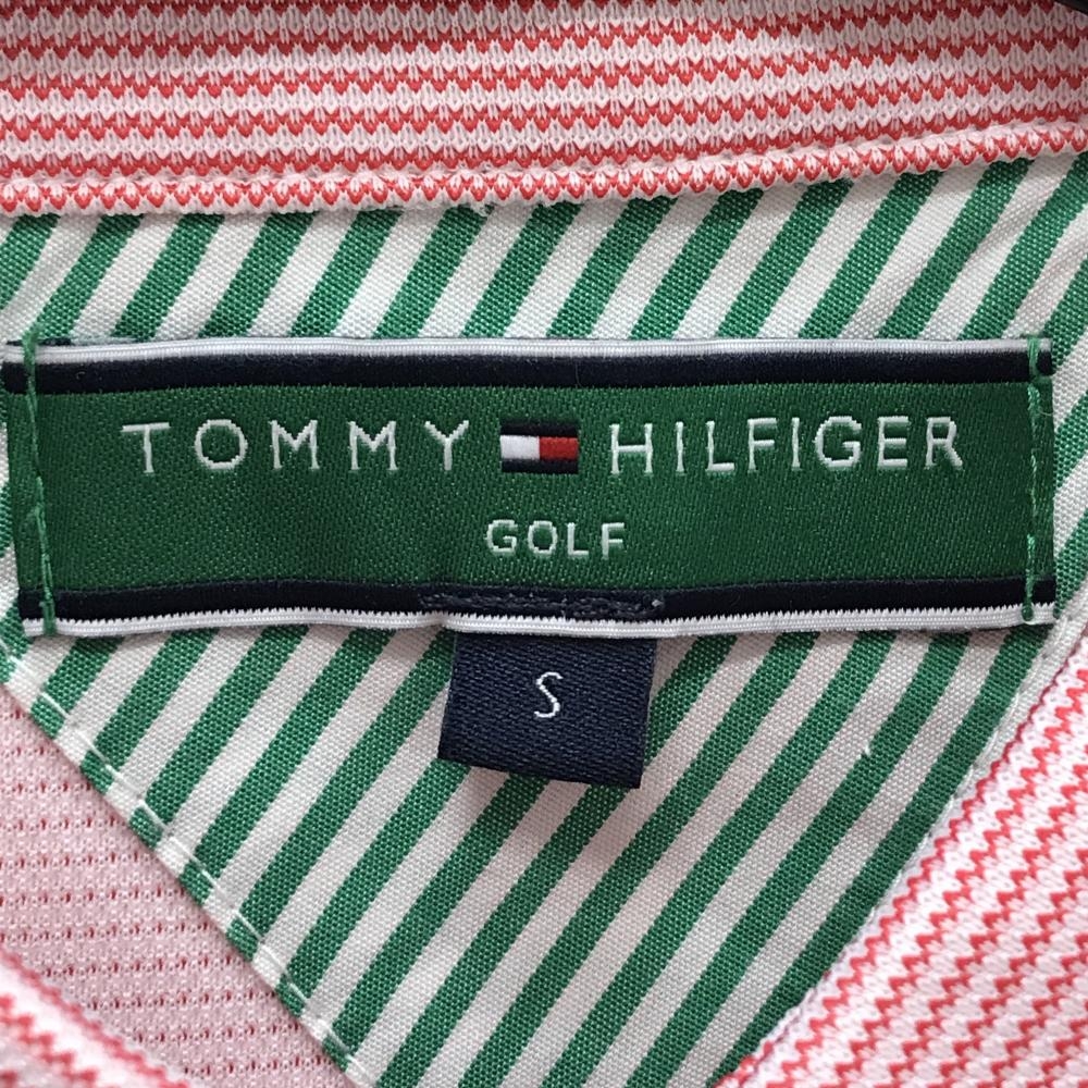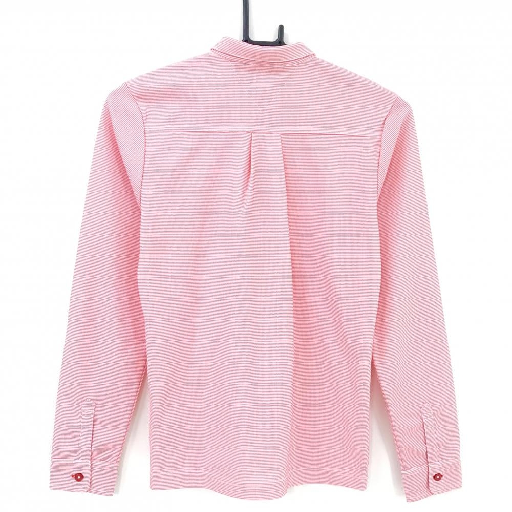 【美品】トミーヒルフィガーゴルフ 長袖ポロシャツ ピンク系×白 前立てフリル 襟ロゴ レディース S ゴルフウェア Tommy Hilfiger Golf