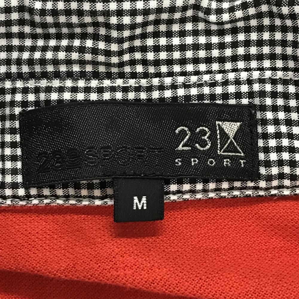 【美品】23区スポーツ 半袖ポロシャツ レッド×黒 一部ギンガムチェック フェイクレイヤード レディース M ゴルフウェア 23区