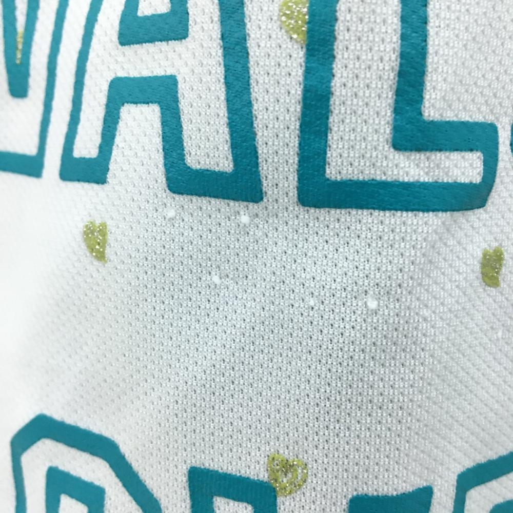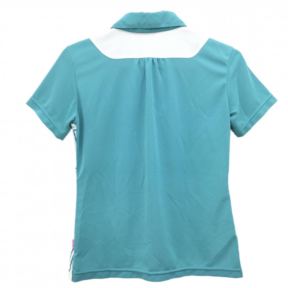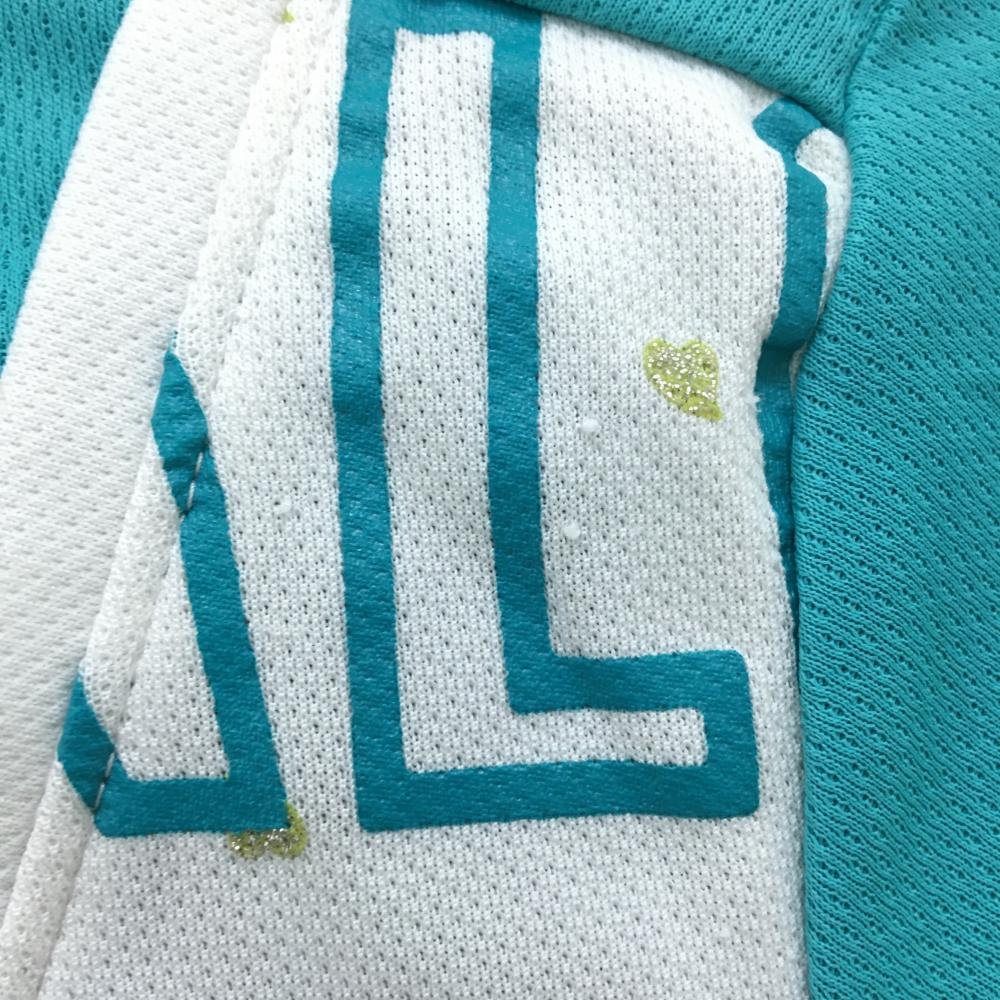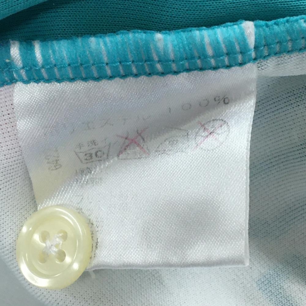 ビバハート 半袖ポロシャツ グリーン系×白 前総柄 重ね着風 レディース 42(L) ゴルフウェア VIVA HEART