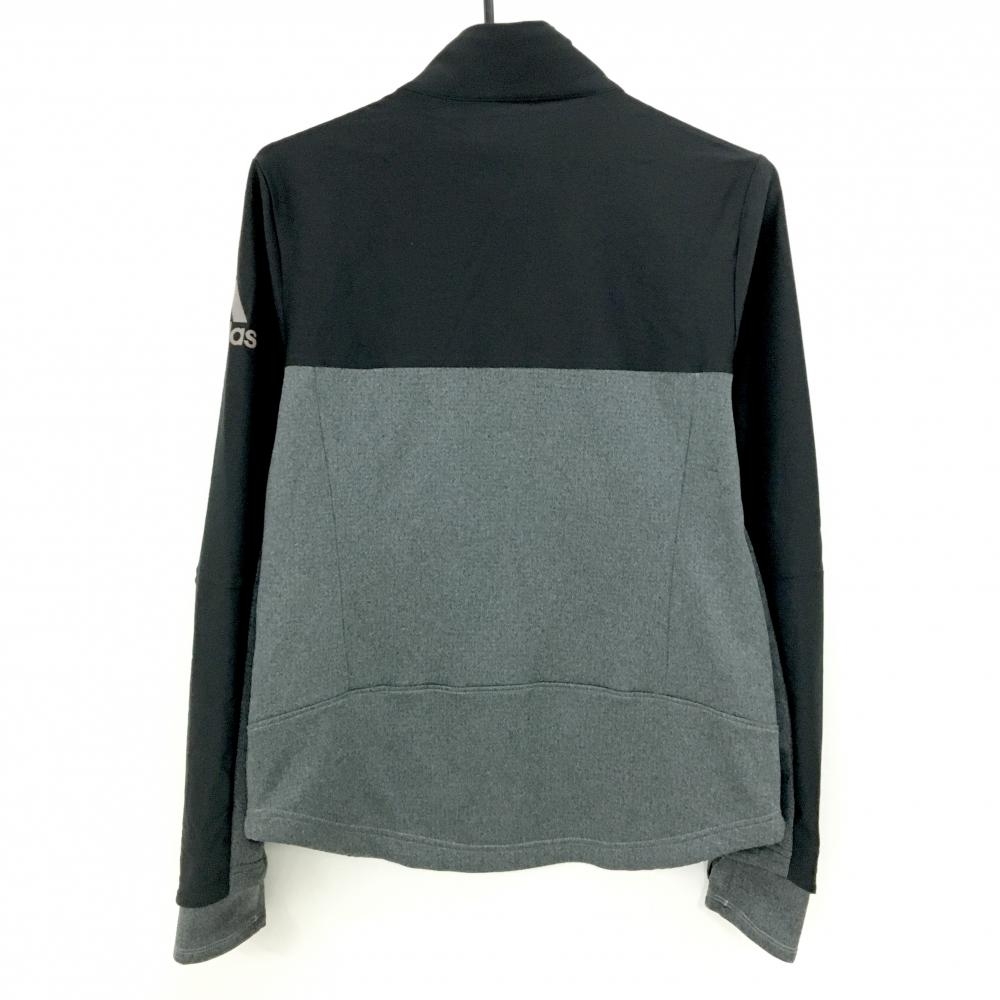 【超美品】アディダス ジャケット 黒×ダークグレー 袖ロゴ 裏微起毛 レディース OT/XG ゴルフウェア adidas