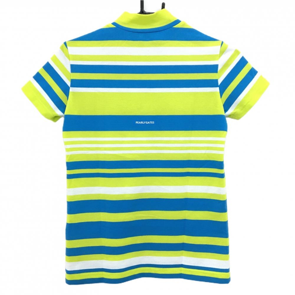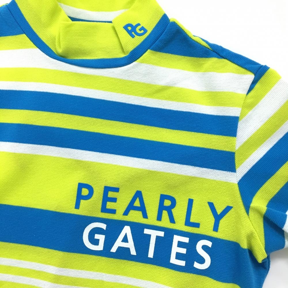 【美品】パーリーゲイツ 半袖ハイネックシャツ ライトグリーン×ブルー レディース 0(S) ゴルフウェア 2024年モデル PEARLY GATES