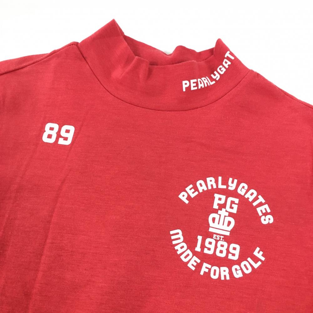 【美品】パーリーゲイツ 半袖ハイネックシャツ レッド ロゴ白 ストレッチ レディース 0(S) ゴルフウェア PEARLY GATES
