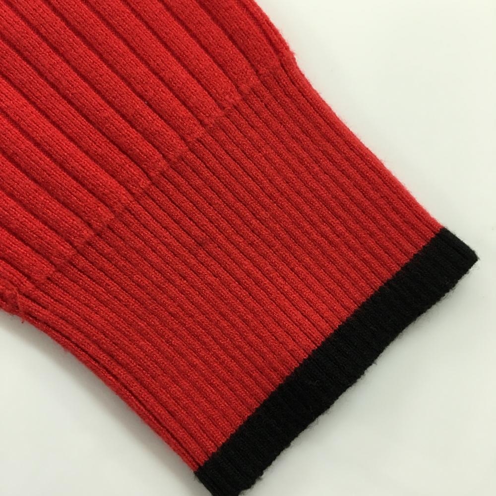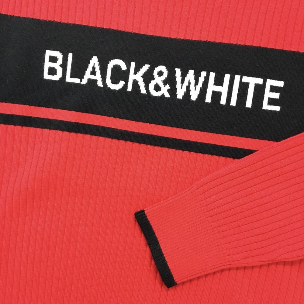 【美品】ブラックアンドホワイト セーター レッド×黒 リブ織 フロントロゴ ニット レディース WM(M) ゴルフウェア Black&White