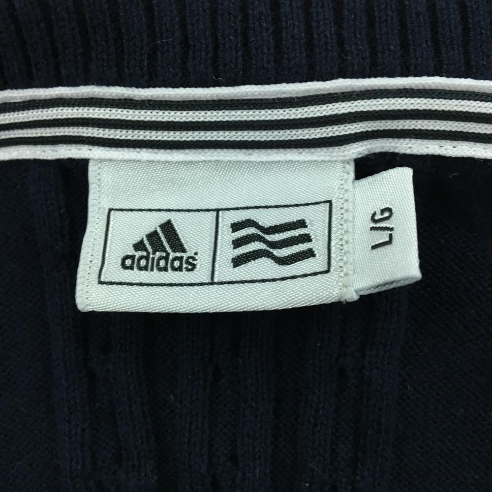【超美品】アディダス ニットベスト ネイビー×白 ケーブル編み Vネック 綿100% ロゴ刺しゅう レディース L/G(L) ゴルフウェア adidas