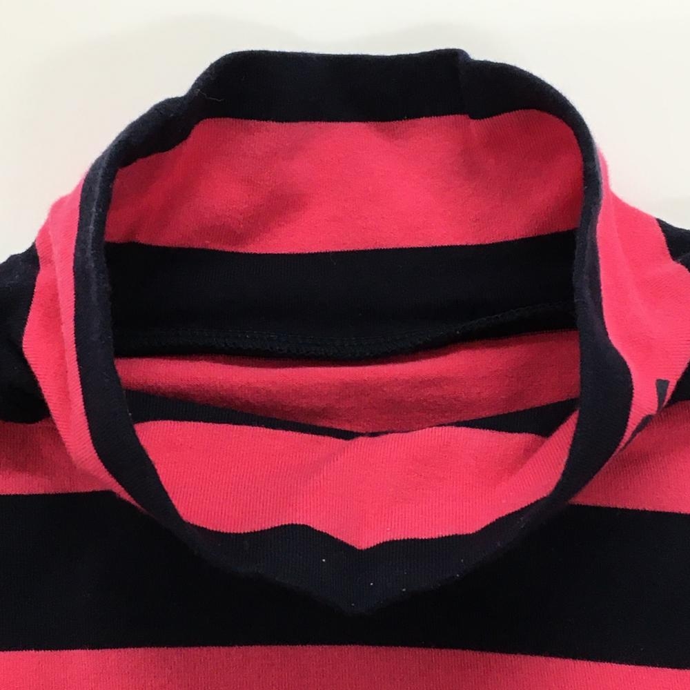 【美品】パーリーゲイツ 長袖ハイネックシャツ ピンク×黒 ボーダー コットン混 レディース 1(M) ゴルフウェア PEARLY GATES