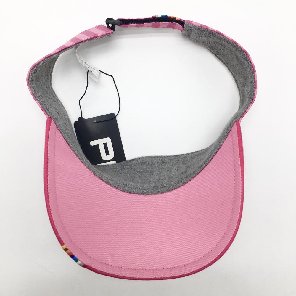 【新品】ピン サンバイザー ピンク ストライプ ロゴ刺しゅう 56cm フリー ゴルフウェア PING