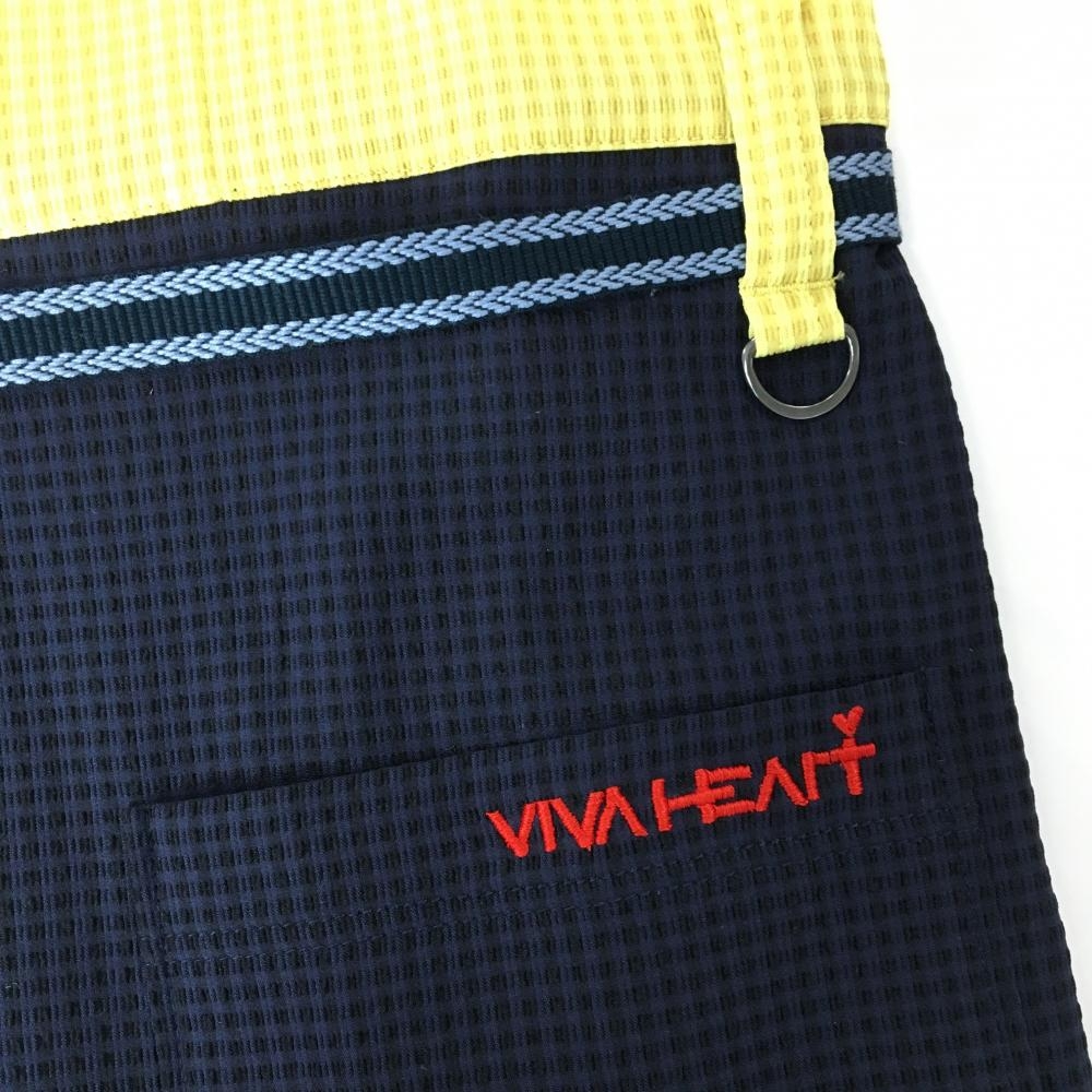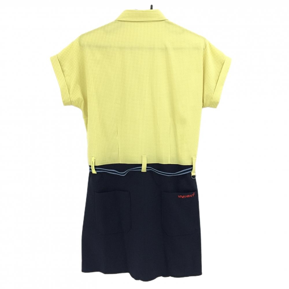 【超美品】ビバハート 半袖ポロワンピース イエロー系×ネイビー チェック柄 胸ポケット レディース 40(M) ゴルフウェア VIVA HEART