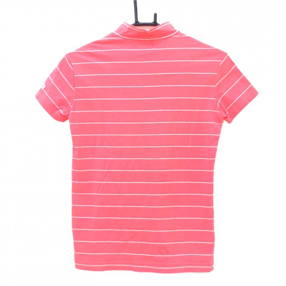 パーリーゲイツ 半袖ハイネックシャツ ピンク×白 ボーダー ニコちゃん スマイル レディース 0(S) ゴルフウェア PEARLY GATES