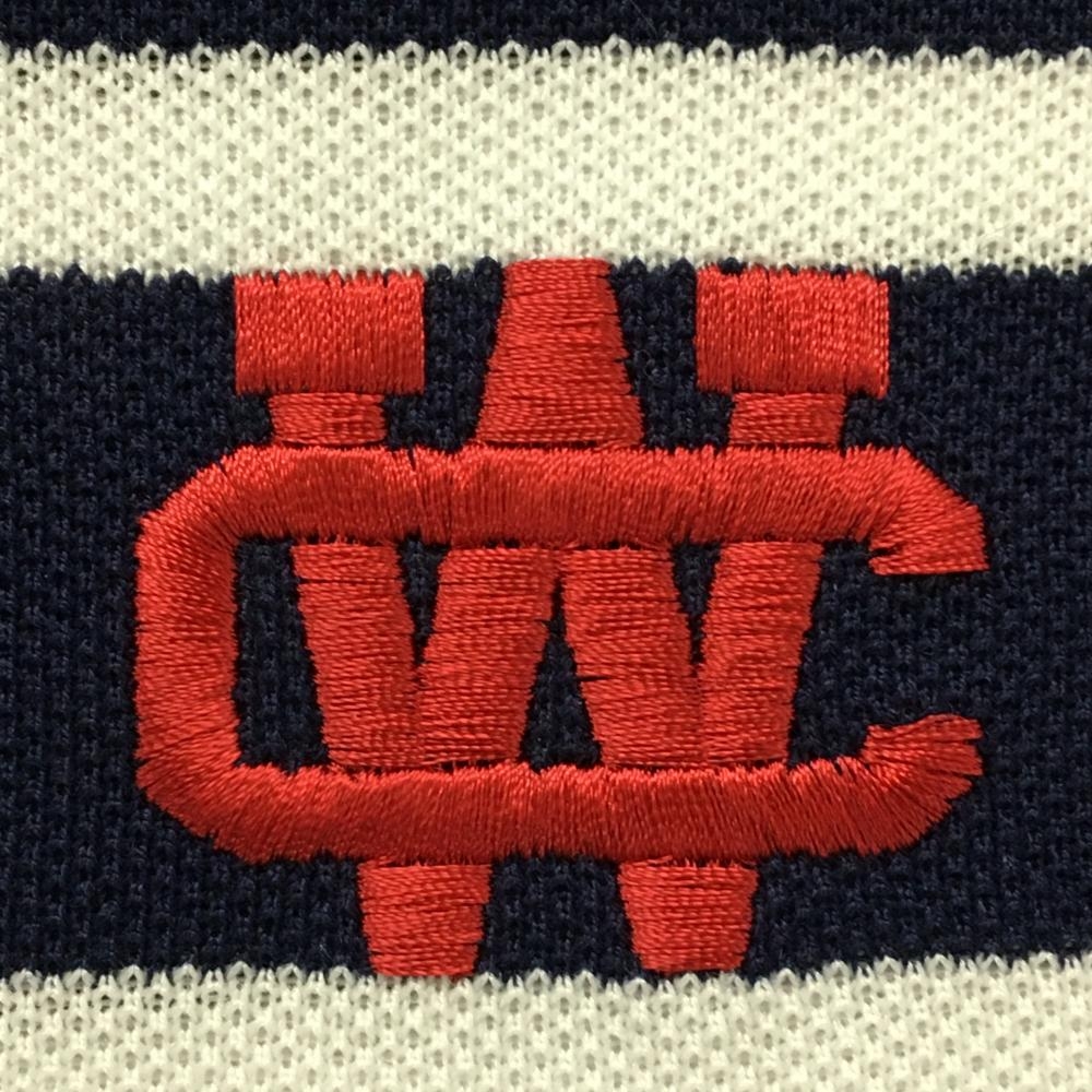【超美品】キャロウェイ 半袖ポロシャツ ネイビー×白 上部ボーダー 襟ストライプメッシュ レディース L ゴルフウェア Callaway
