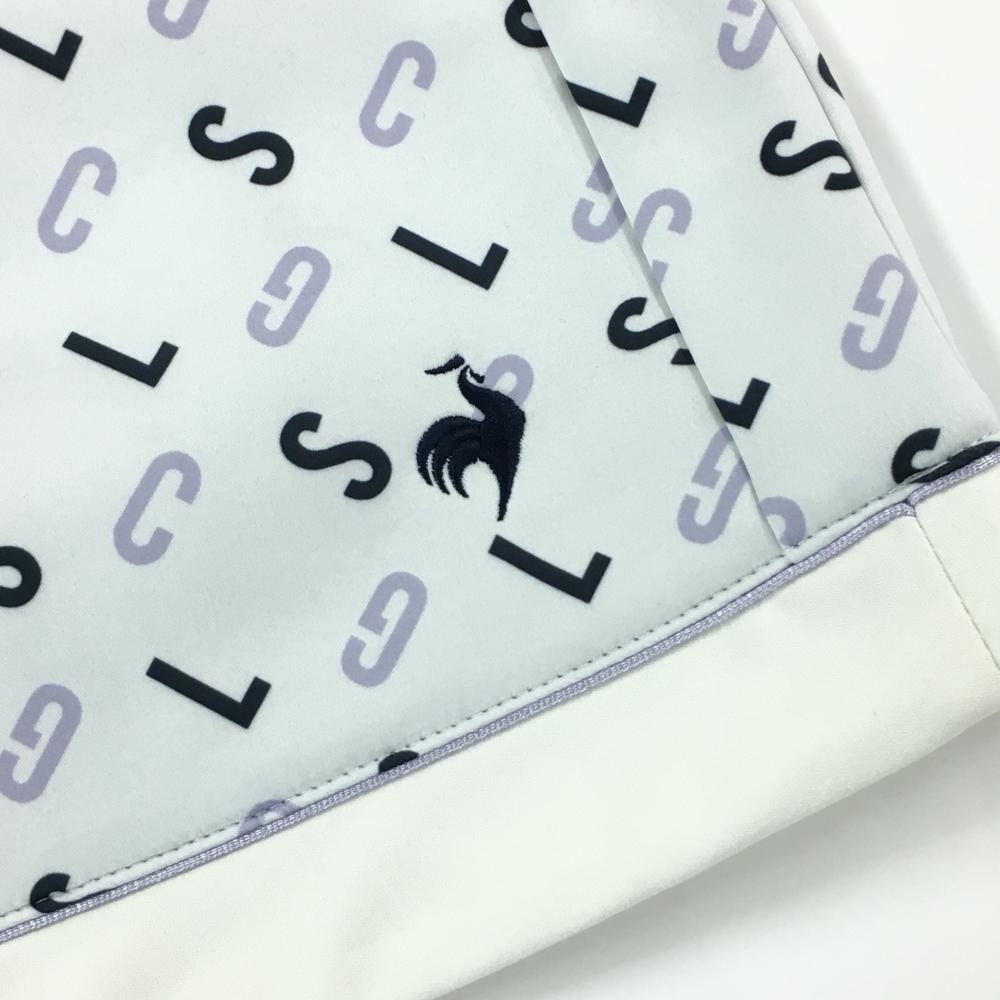 【超美品】ルコックゴルフ スカート ライトグレー系×パープル 英字総柄 裏起毛 レディース LL ゴルフウェア le coq sportif