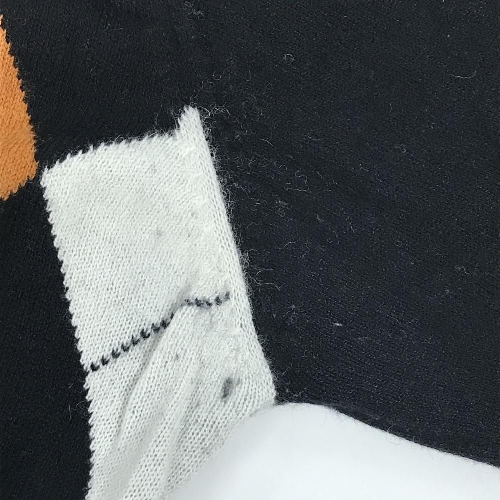 【美品】ルコックゴルフ ニットカーディガン 黒×白×ブラウン 前面アーガイル柄 ウール混 レディース L ゴルフウェア le coq sportif