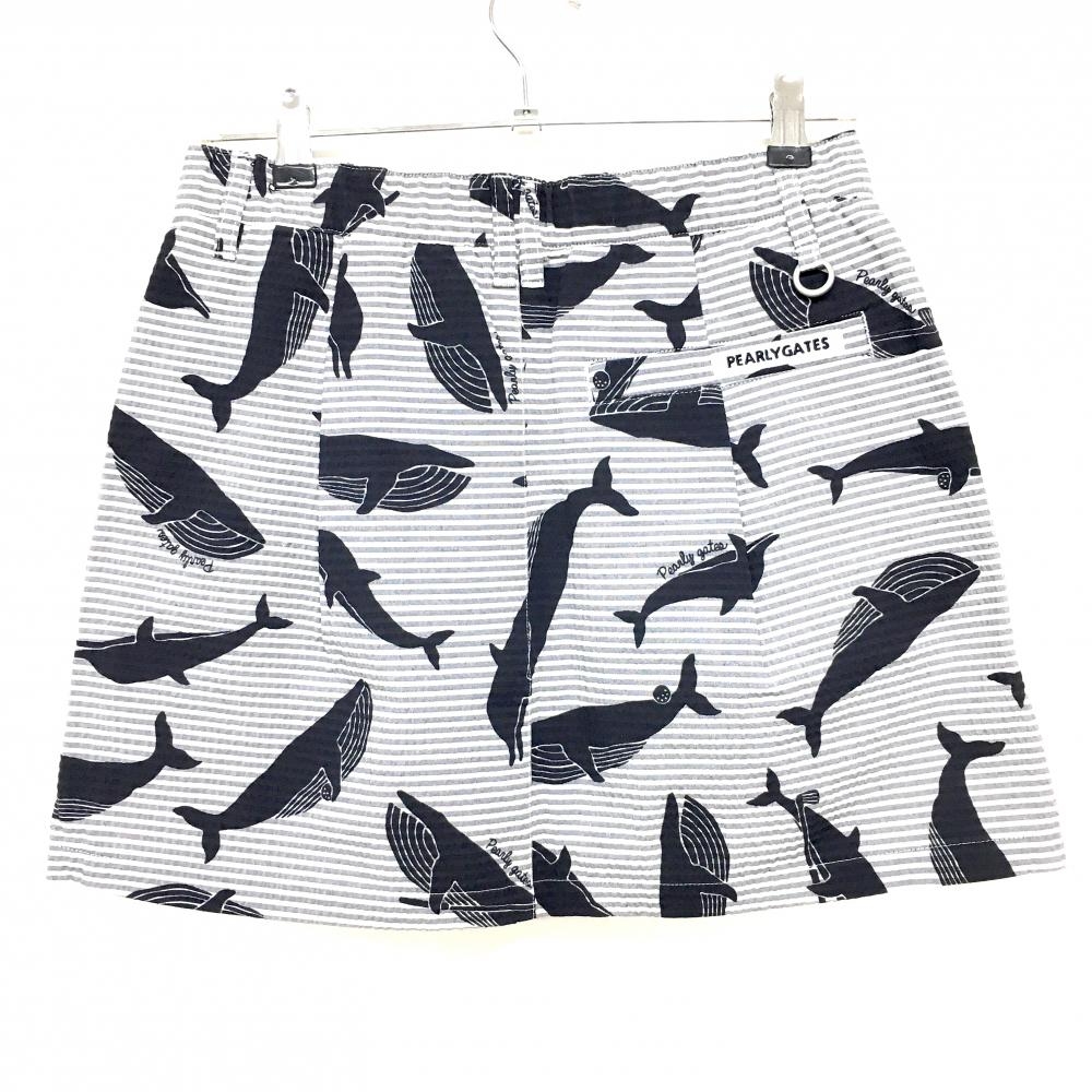 【新品】パーリーゲイツ スカート 白×グレー×黒 総柄 イルカ クジラ ボーダー レディース 1(M) ゴルフウェア PEARLY GATES