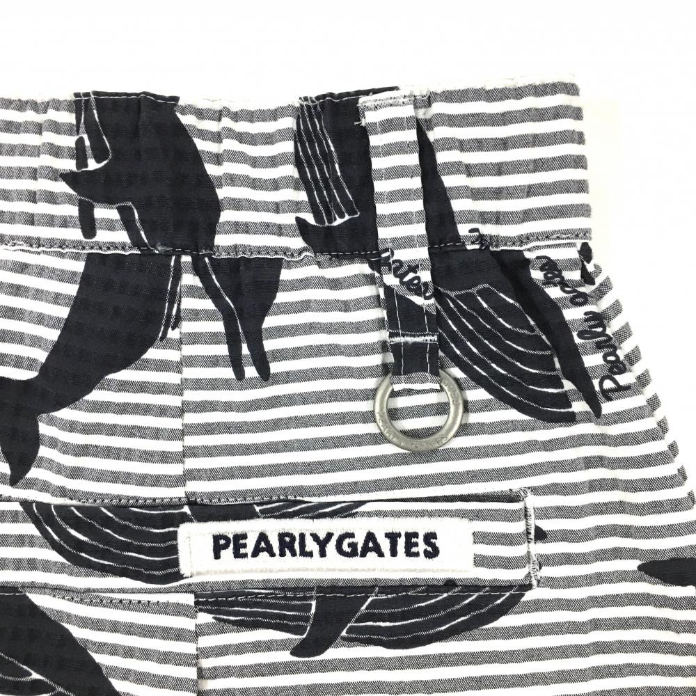 【新品】パーリーゲイツ スカート 白×グレー×黒 総柄 イルカ クジラ ボーダー レディース 1(M) ゴルフウェア PEARLY GATES