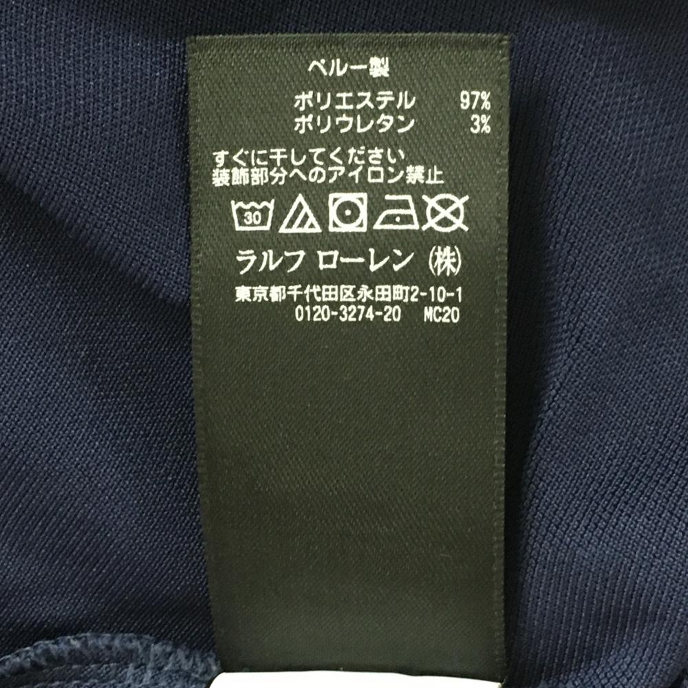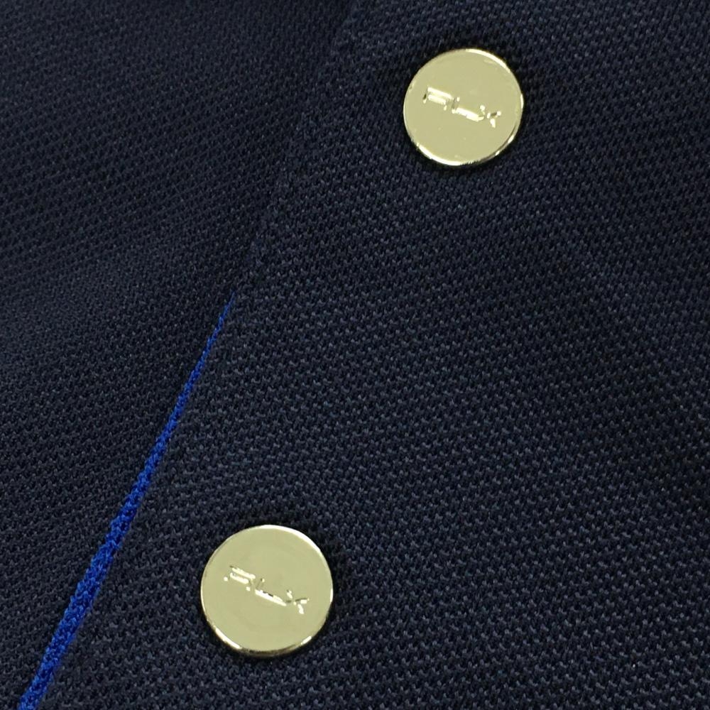 【美品】RLXラルフローレン 半袖ポロシャツ ネイビー×白 袖ボーダー スナップボタン レディース S ゴルフウェア Ralph Lauren