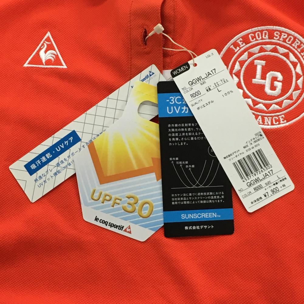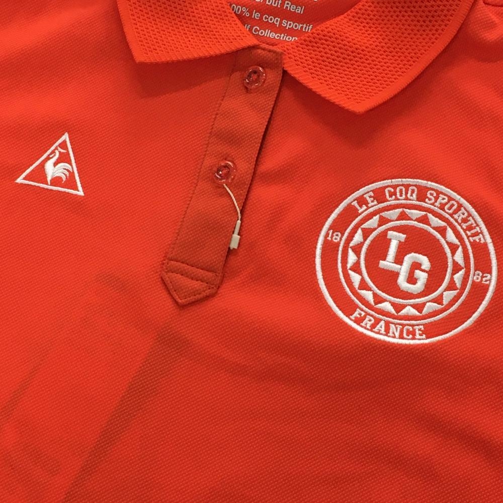 【新品】ルコックゴルフ 半袖ポロシャツ オレンジ×白 胸ロゴ刺しゅう UPF30 レディース L ゴルフウェア le coq sportif