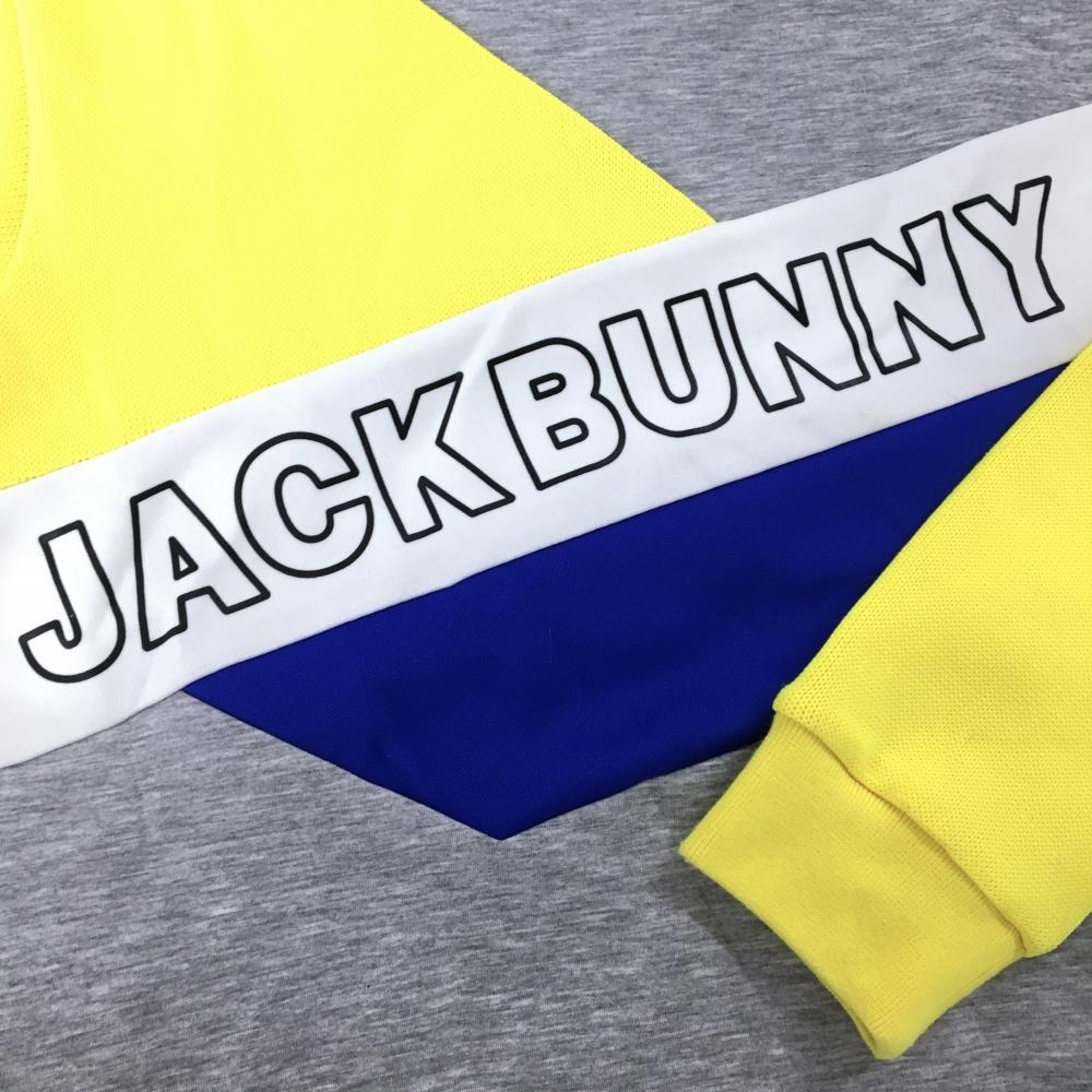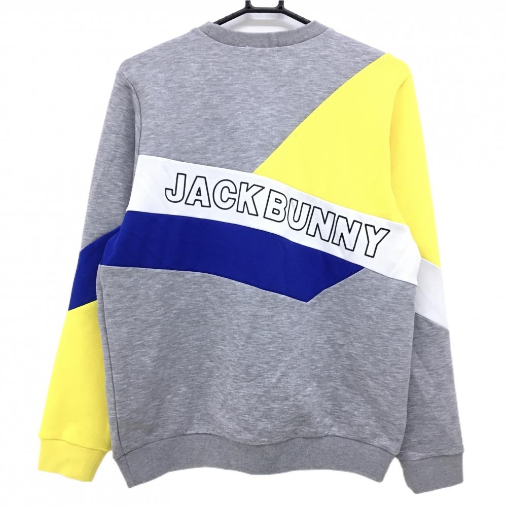 【美品】ジャックバニー トレーナー グレー×イエロー×ブルー バイカラー ロゴプリント レディース 2(L) ゴルフウェア Jack Bunny