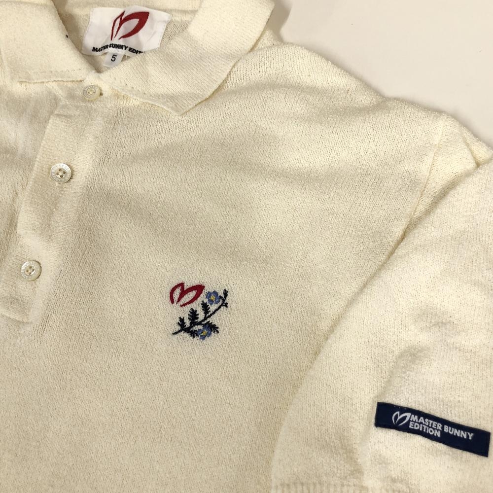 【美品】マスターバニー ニット半袖ポロシャツ アイボリー ロゴ刺しゅう メンズ 5(L) ゴルフウェア MASTER BUNNY EDITION