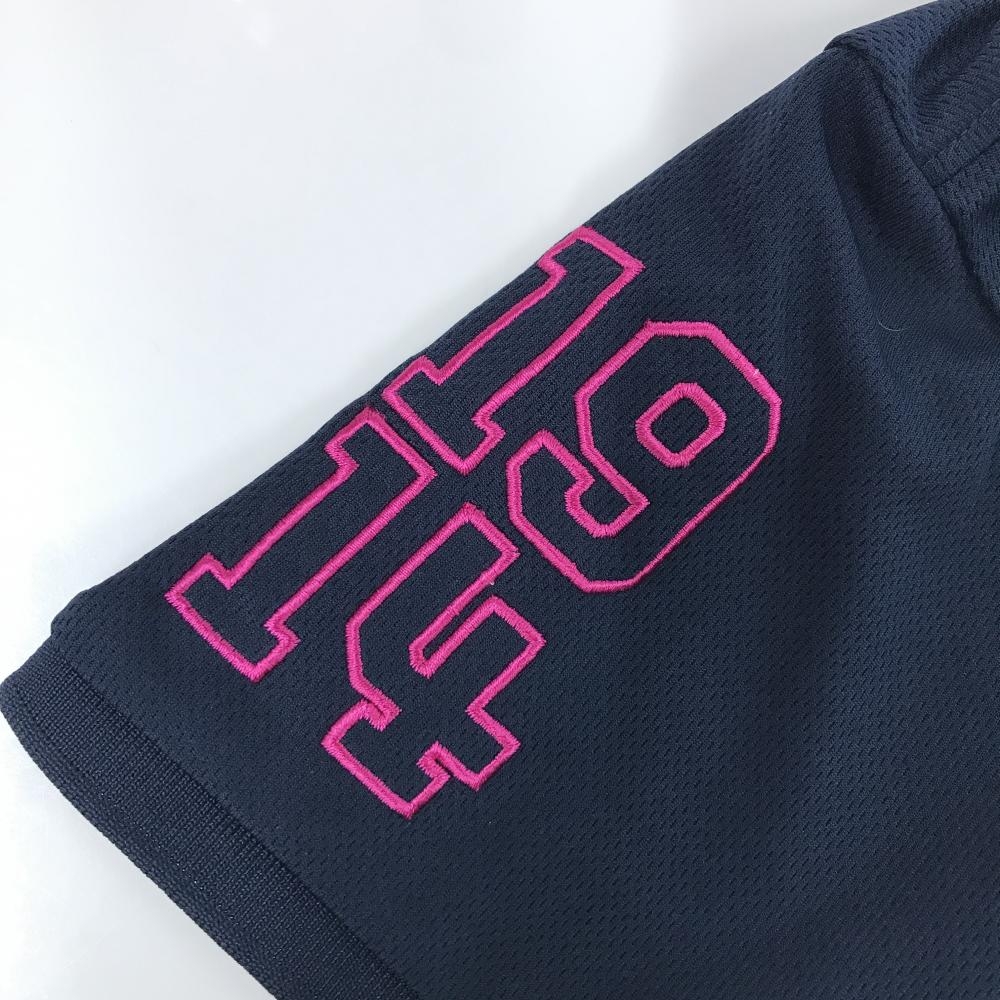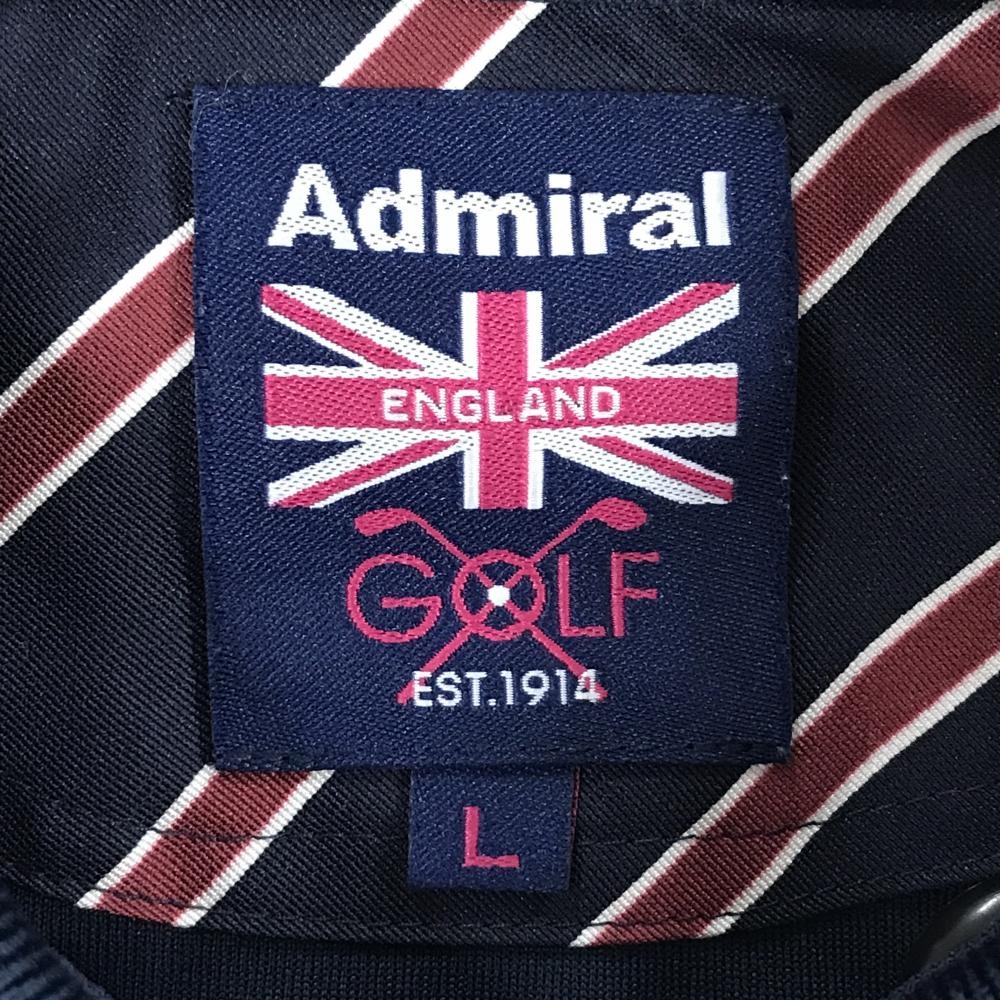 【超美品】アドミラル 半袖ポロシャツ ネイビー ビッグロゴピンク ENGLAND刺しゅう レディース L ゴルフウェア Admiral