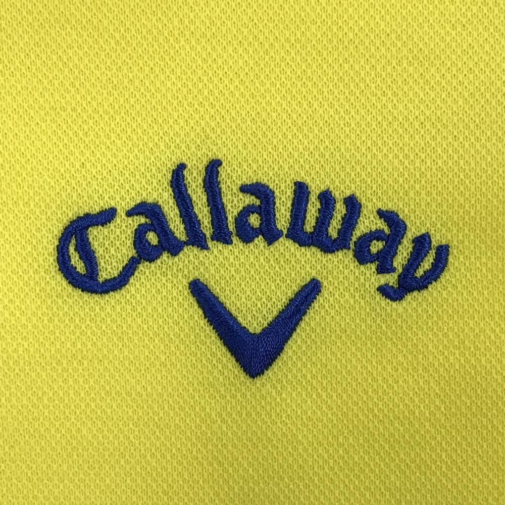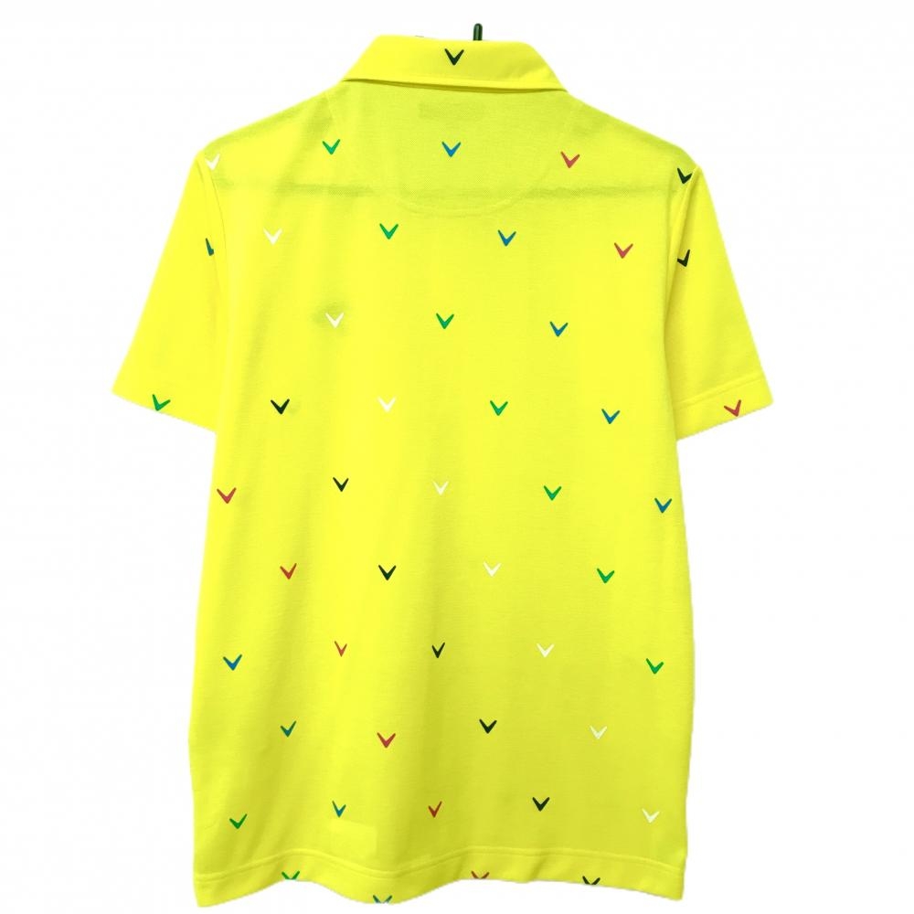【超美品】キャロウェイ 半袖ポロシャツ イエロー×マルチカラー ロゴ総柄 メンズ L ゴルフウェア Callaway