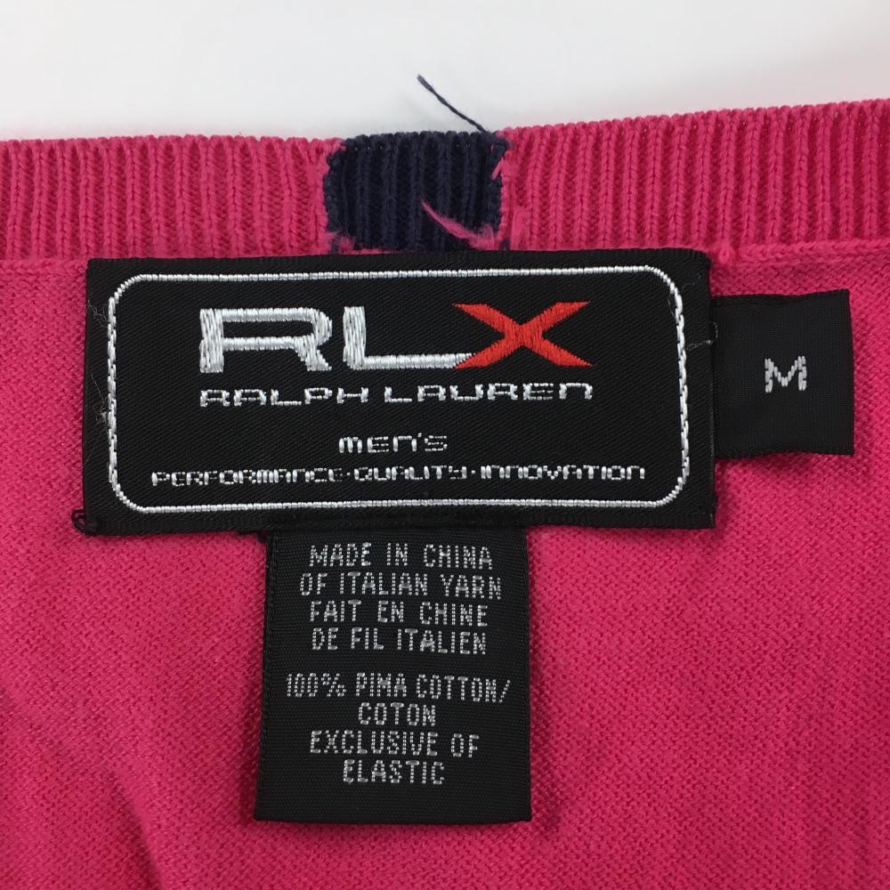 【美品】RLXラルフローレン ニットベスト ピンク 薄手 Vネック メンズ M ゴルフウェア Ralph Lauren