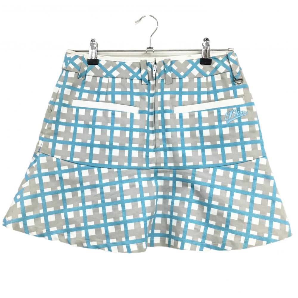 フィラゴルフ スカート 白×グリーンブルー×グレー 格子柄 ティー装着可 レディース L ゴルフウェア FILA GOLF