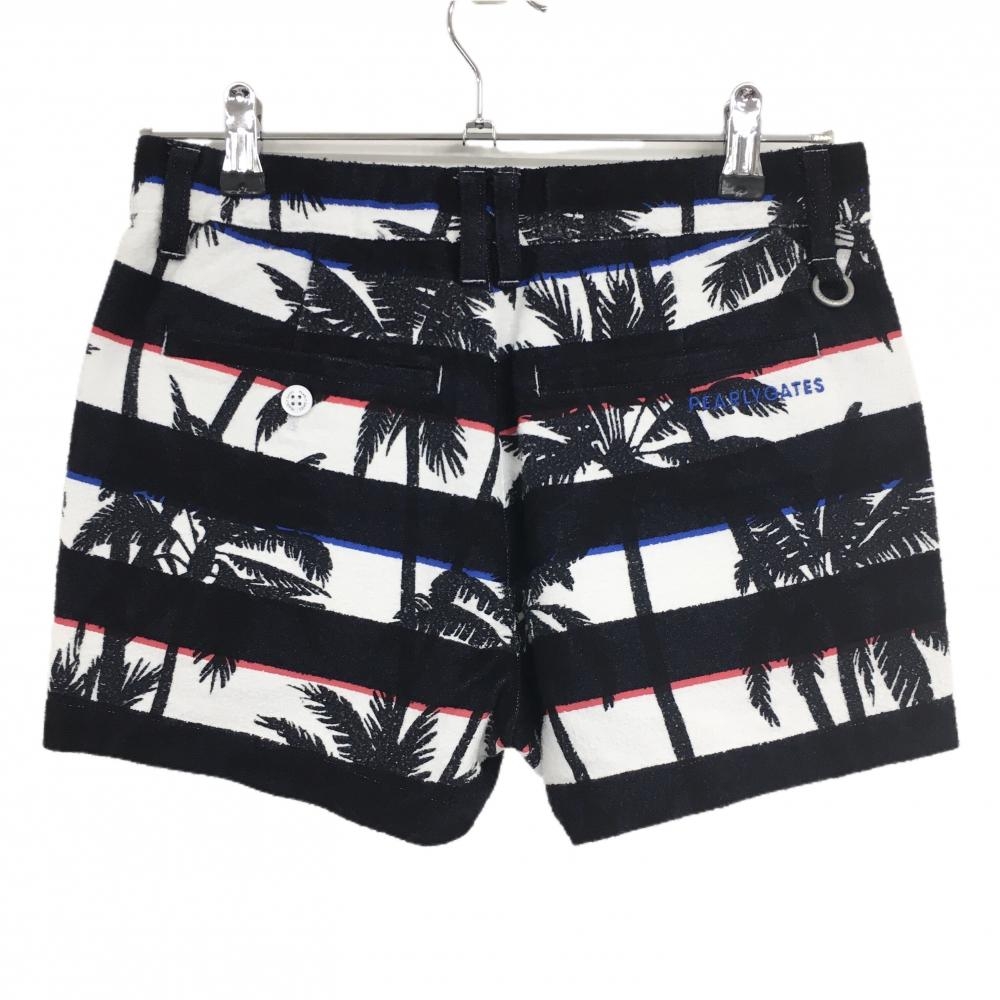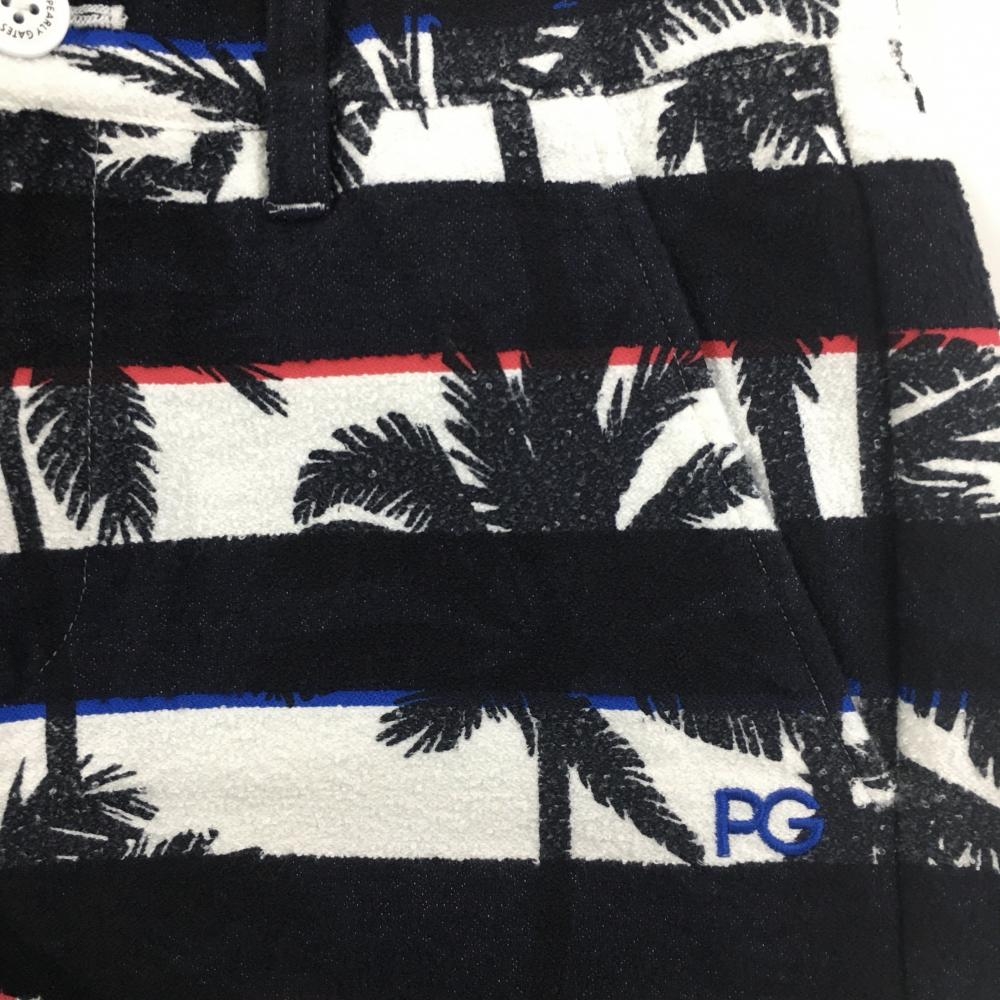 【新品】パーリーゲイツ ショートパンツ 黒×白 ボーダー ヤシの木柄 薄手パイル風生地 レディース 0(S) ゴルフウェア PEARLY GATES