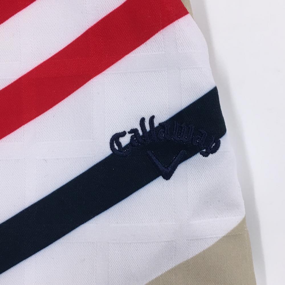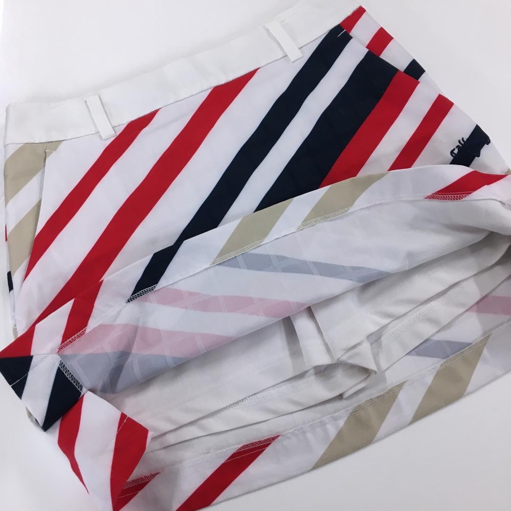【美品】キャロウェイ スカート 白×ネイビー×レッド 斜めストライプ 内側インナーパンツ レディース M ゴルフウェア Callaway