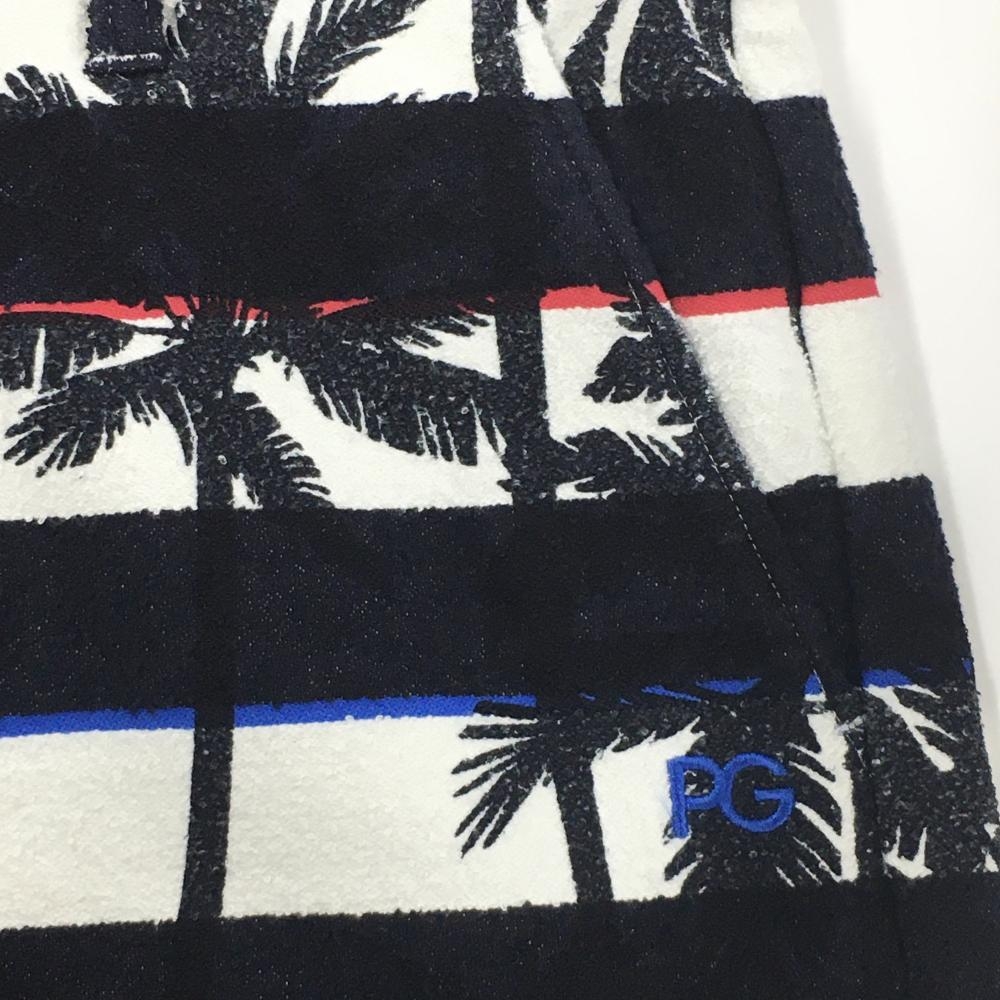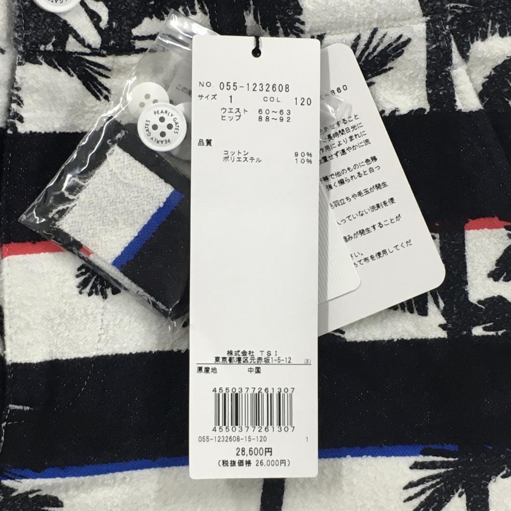 【新品】パーリーゲイツ ショートパンツ 黒×白 ボーダー ヤシの木柄 薄手パイル風生地 レディース 1(M) ゴルフウェア PEARLY GATES
