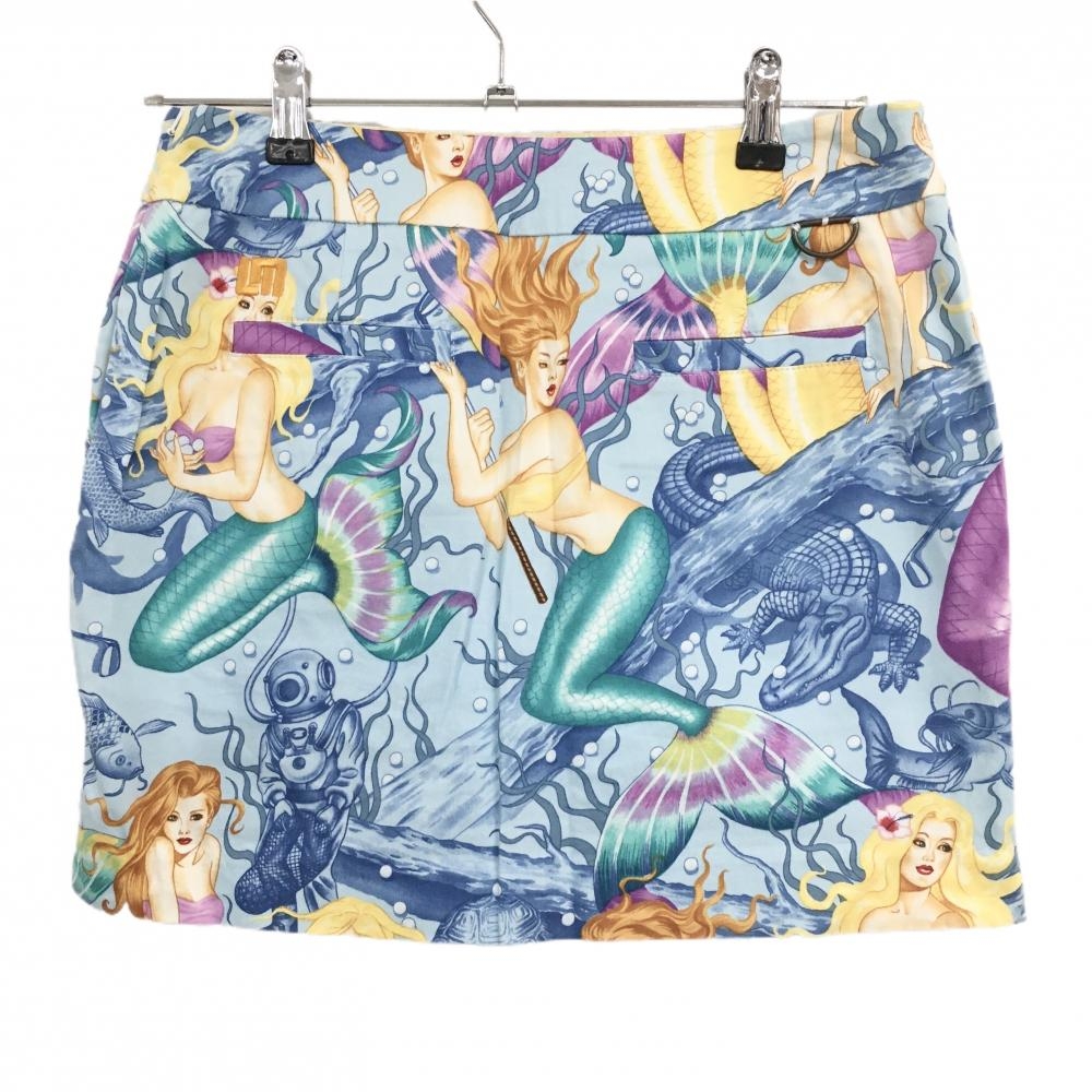 【美品】ラウドマウス スカート ライトブルー×マルチカラー 総柄 内側インナーパンツ レディース US-4 ゴルフウェア LOUDMOUTH