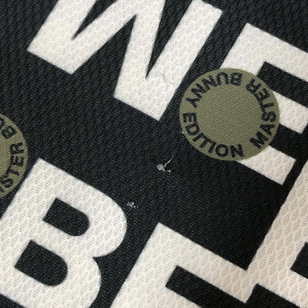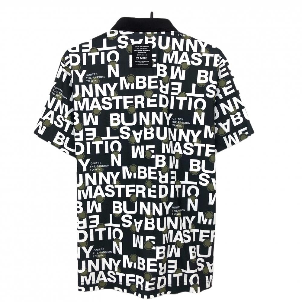 【美品】マスターバニー 半袖ポロシャツ 黒×白 ロゴ総柄 ドット メンズ 5(L) ゴルフウェア 2024年モデル MASTER BUNNY EDITION