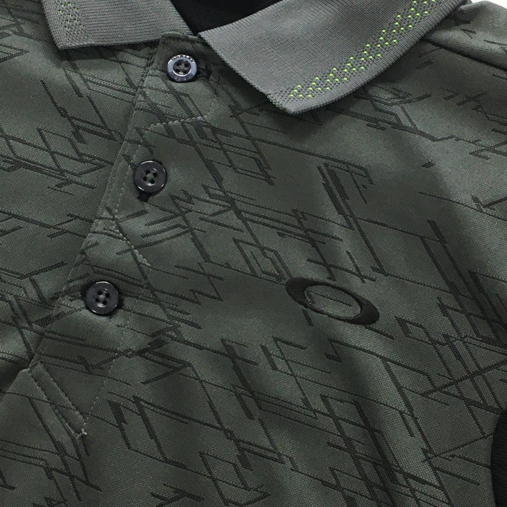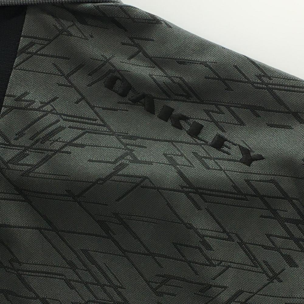 【超美品】オークリー 半袖ポロシャツ グレー×黒 総柄透かし模様 袖下切替 メンズ M ゴルフウェア Oakley