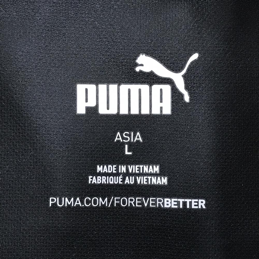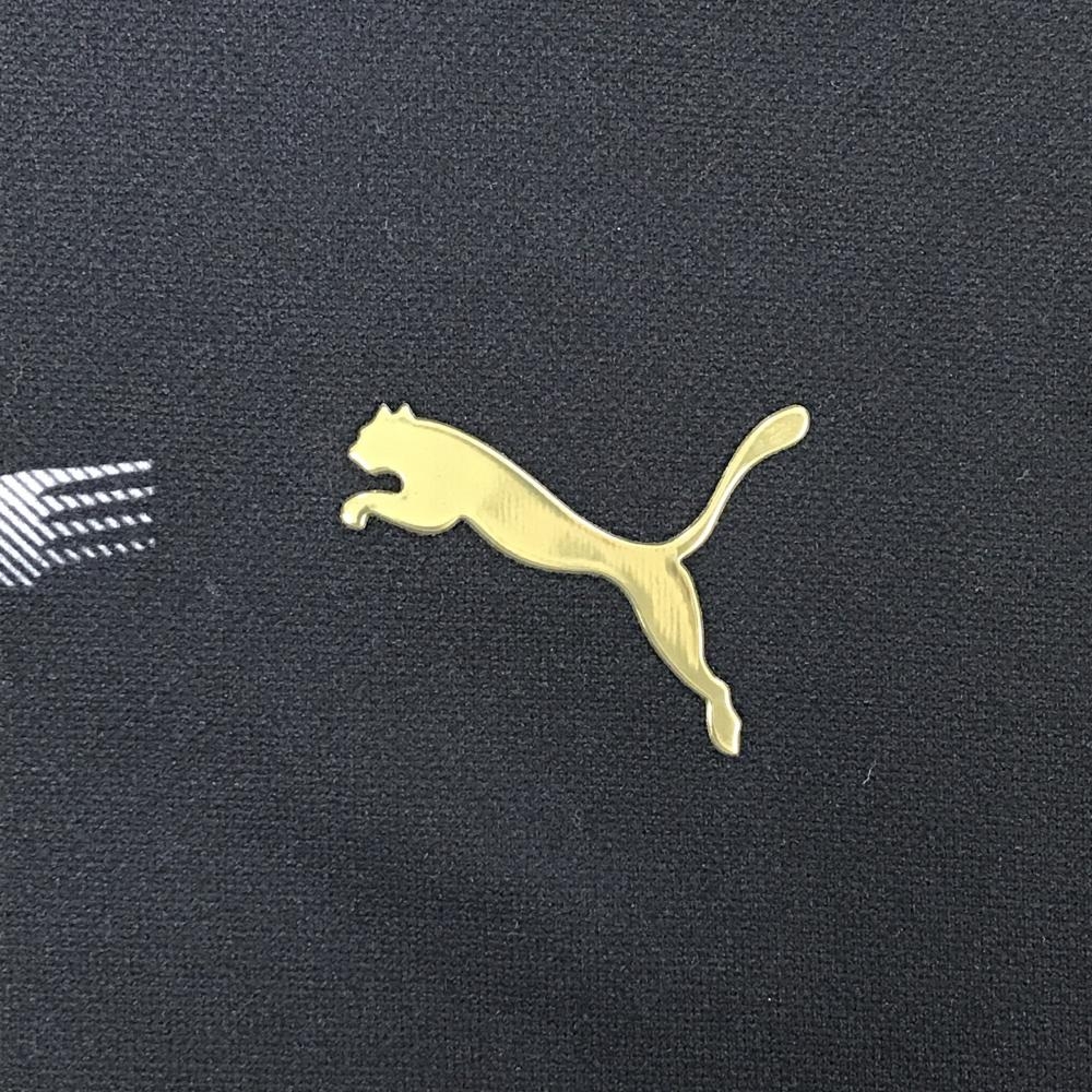 【美品】プーマ 半袖ポロシャツ 黒×白 総柄 ボタンダウン ゴールドロゴ メンズ L ゴルフウェア PUMA