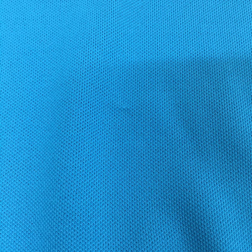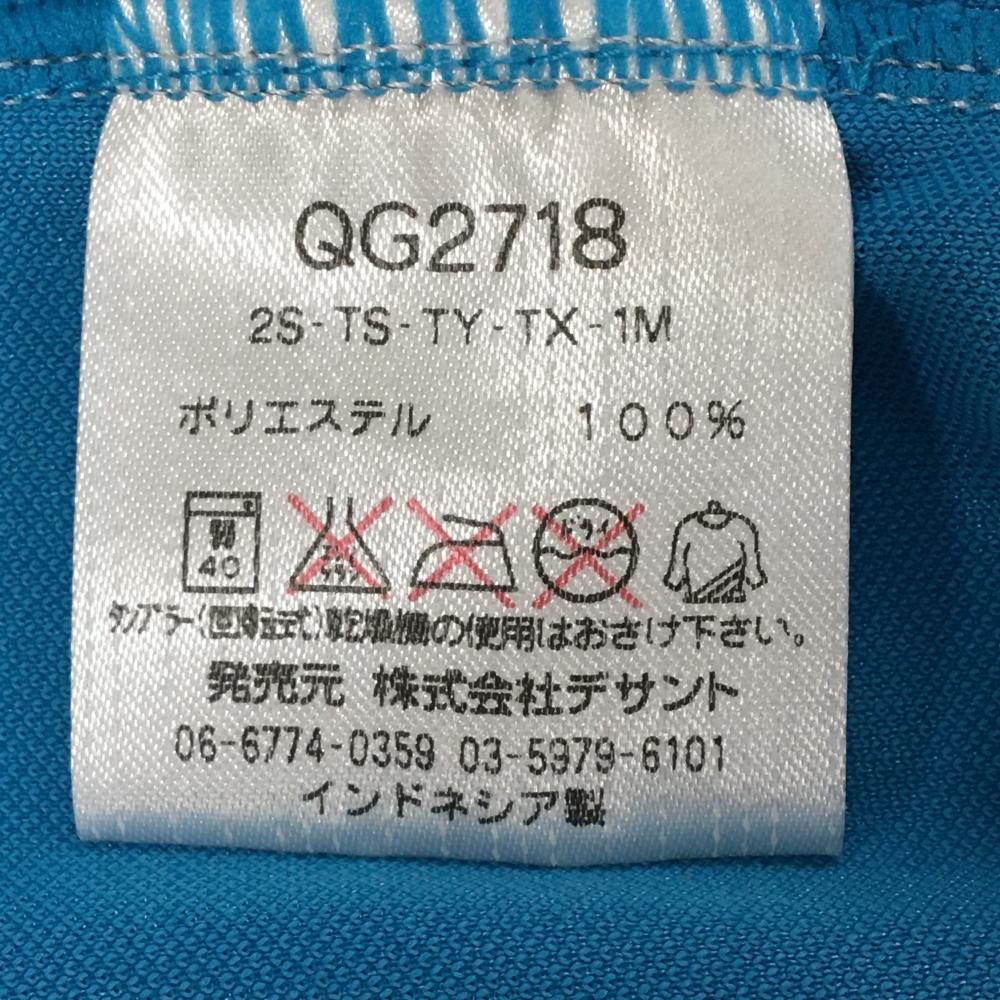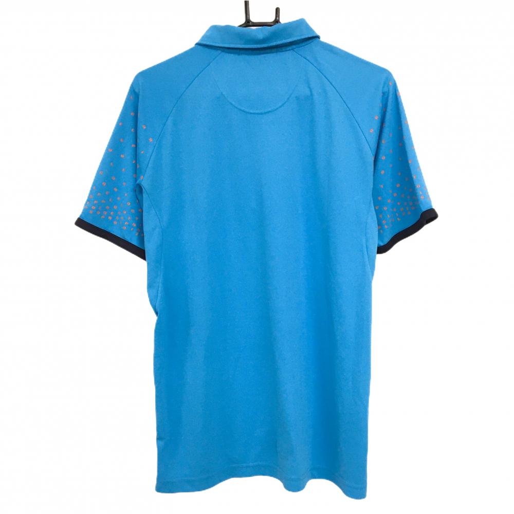 ルコックゴルフ 半袖ポロシャツ ライトブルー×オレンジ 袖ロゴ総柄 ハーフジップ メンズ M ゴルフウェア le coq sportif