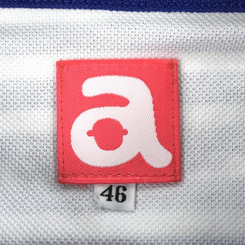 【美品】アルチビオ 半袖ポロシャツ 白×ブルー 袖・背面ボーダー ワッペン メンズ 46(M) ゴルフウェア archivio