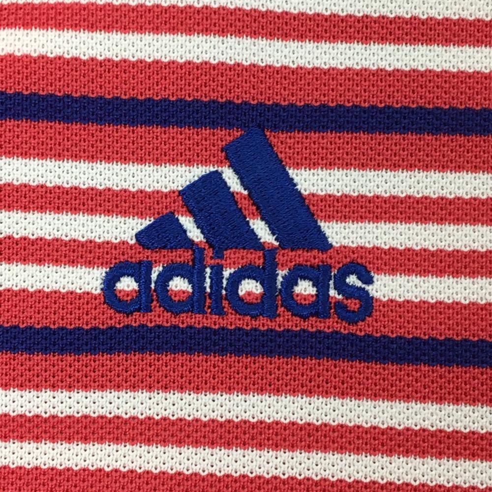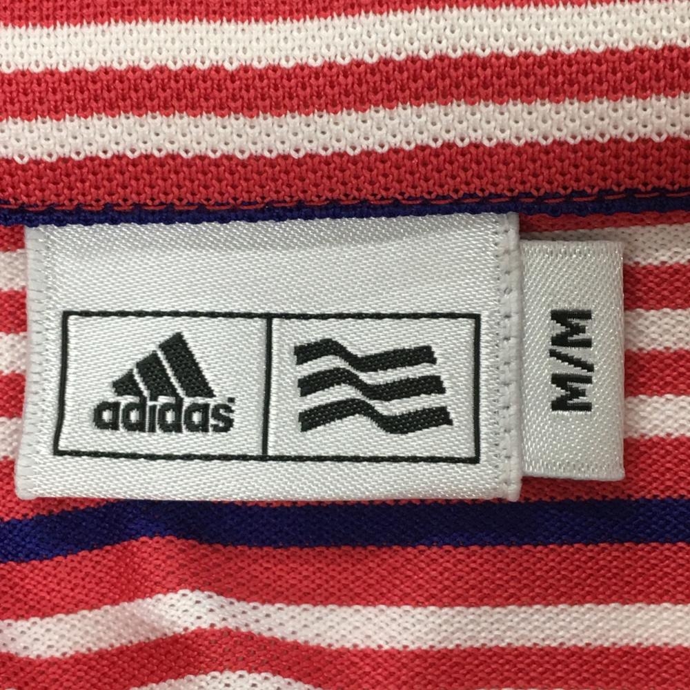 【美品】アディダス 半袖ポロシャツ レッド×白×ネイビー ボーダー ボタンダウン メンズ M/M ゴルフウェア adidas