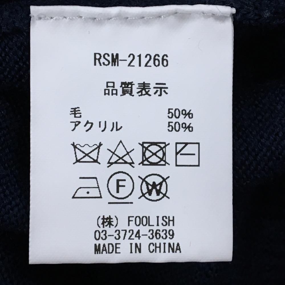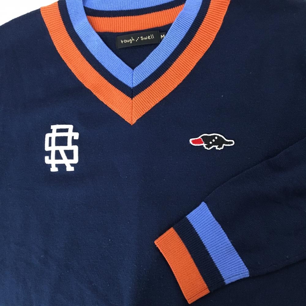 ラフアンドスウェル セーター ネイビー×オレンジ ネック袖口ライン Vネック ウール混 ニット メンズ M ゴルフウェア rough&swell