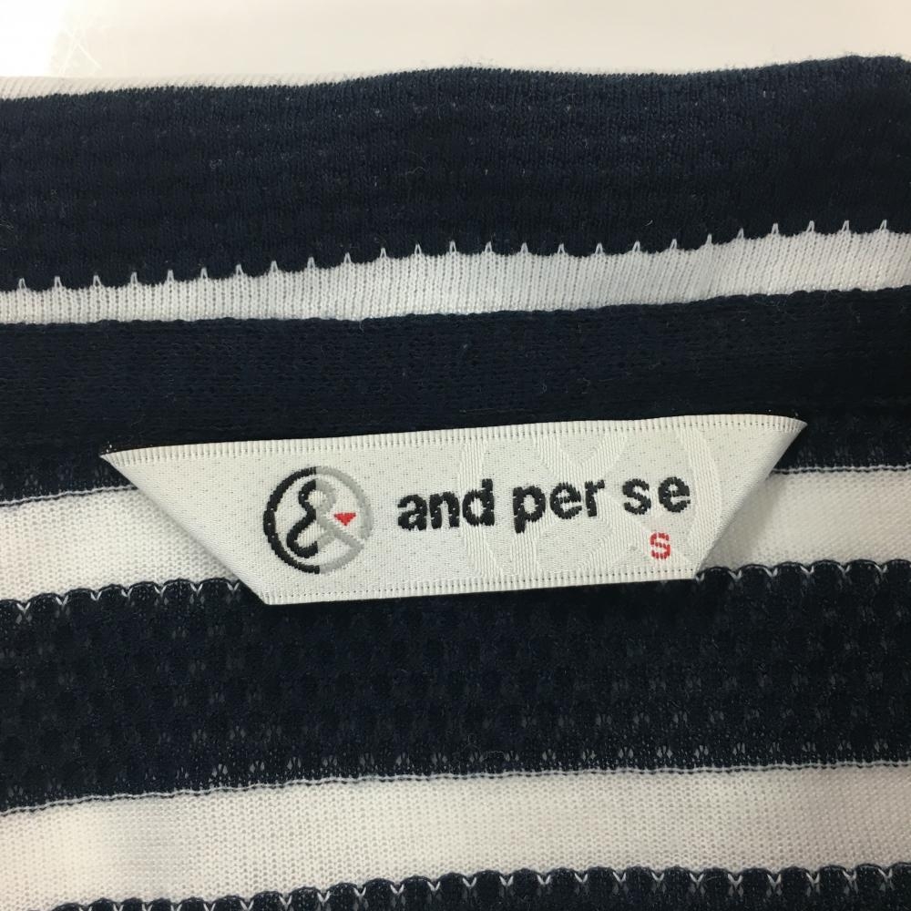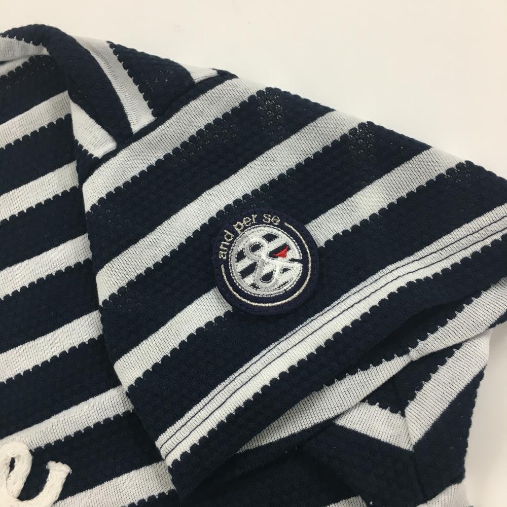 【美品】アンパスィ 襟付Tシャツ ネイビー×白 ボーダー 袖ロゴ レディース S ゴルフウェア and per se